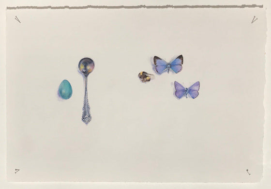 From a family of collectors, my father collected blown birds eggs in the 1940s, which I have incorporated into my works. My personal collection of beetles, butterflies and bees also frequent my compositions.