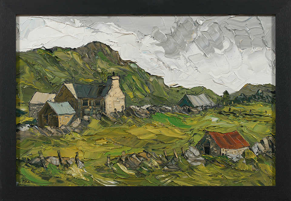 Martin is making a name for himself on the contemporary Welsh art market and we are delighted to be introducing his stunning work to our collectors east of the border. His paintings are steeped in the traditions of his antecedents in the twentieth century Welsh Art school, particularly Gwilym Prichard, Charles Wyatt Warren and of course Sir Kyffin Williams. His richly textured oils in a subtle, muted palette beautifully capture the distinctive atmosphere of North Wales whether depicting the drama of Snowdonia or the Irish Sea breaking against the shores of Anglesey.
