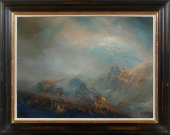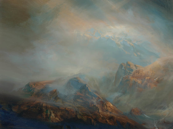 James was born in Bolton in 1971. His obsession with drawing became apparent at an early age and like most from his generation, he remembers the many observational drawings of the ubiquitous Coke cans at High School. It was only with the discovery of automatism and pareidolia that this style started to move slowly towards the expression he is renowned for.  During his degree in Print Making at Leeds Metropolitan University (1991-1994), under the guidance of Phil Redford and Jack Chesterman, he nurtured his sensitivity for oil-based ink that eventually led to oil paint. His speedily produced monotypes, at this time, introduced the energy and gestural qualities which still feature in his landscapes today. Upon finishing his degree James spent a number of years working in various jobs and stints of travel, eventually settling again in his home town to establish a reputation for his unique vision. Since then, he has exhibited widely, won numerous awards and his work features in many private and public collections, including the Manchester City Art Gallery.