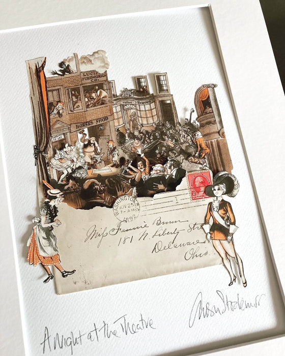Her Picture Books are carefully considered illustrated bookart. Taking the original book title as her starting point she collages in detailed layers with found ephemera, creating 3-D dioramas.