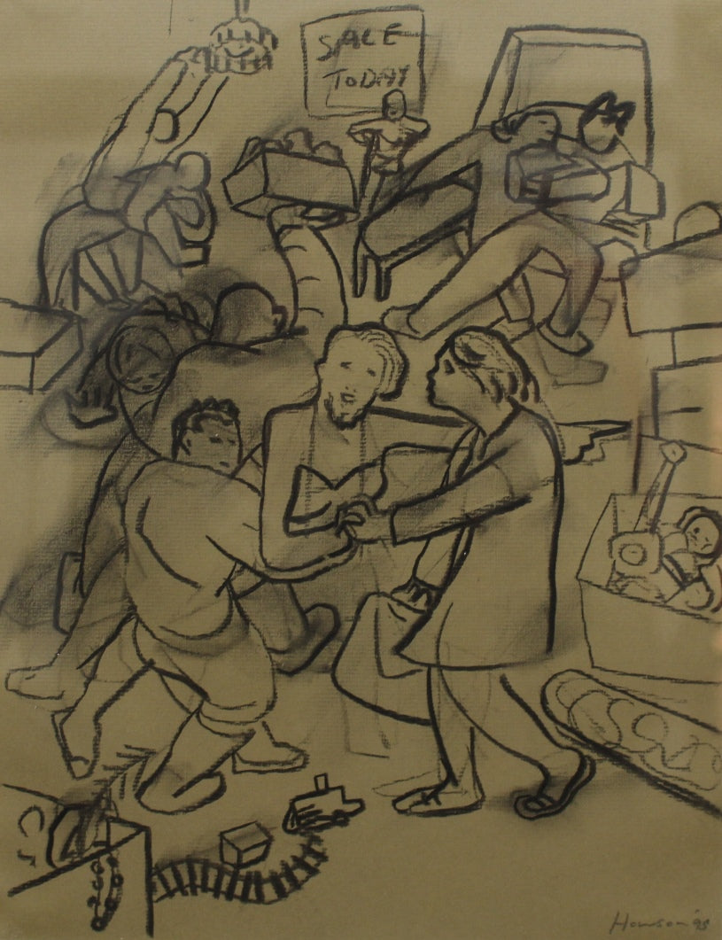 Peter Howson was born in London in 1958; he moved to Scotland in his childhood and enrolled in the Glasgow School of Art in 1975. Peter has admitted that it was only in his final year of art school that his talent was finally recognised and able to grow with the assistance of his tutor, mentor and friend: Sandy Moffat. Peter credits Sandy with discovering his potential as an artist and giving him the confidence to begin his career.