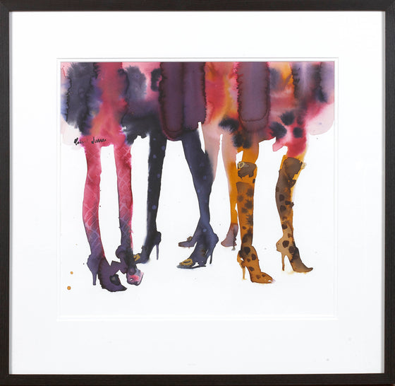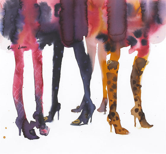 “I love to paint elegant women, in beautiful clothes, in glamorous settings. I’m not really inspired by fashion per se, as more by the feel of the fashion from the past; the Forties and Fifties in particular have a classic, ageless beauty expressed by fashions of the time. I am influenced enormously by the elegant and beautiful fashion drawings by illustrators of this period, as well as contemporary fashion artists and illustrators working today. I love the playful, flirty and romantic story telling in the work of illustrators such as Rene Gruau and Andre-Edouard Marty to name but a few.”