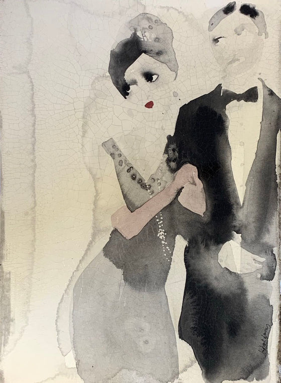 Medium Details: Ink and crackle glaze on 640 textured watercolour paper, finished with a gloss varnish. The painting has a deckled edge along the right side