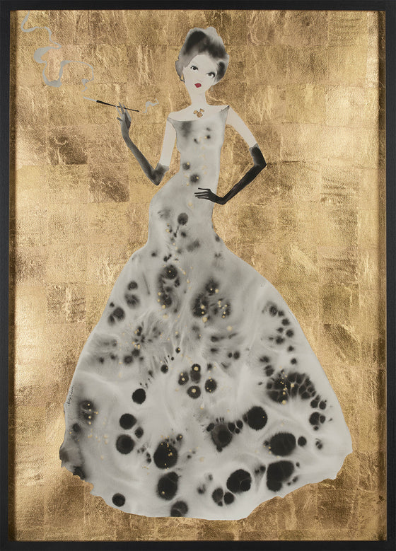 “I love to paint elegant women, in beautiful clothes, in glamorous settings. I’m not really inspired by fashion per se, as more by the feel of the fashion from the past; the Forties and Fifties in particular have a classic, ageless beauty expressed by fashions of the time. I am influenced enormously by the elegant and beautiful fashion drawings by illustrators of this period, as well as contemporary fashion artists and illustrators working today. I love the playful, flirty and romantic story telling in the work of illustrators such as Rene Gruau and Andre-Edouard Marty to name but a few.”