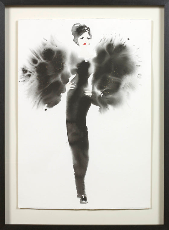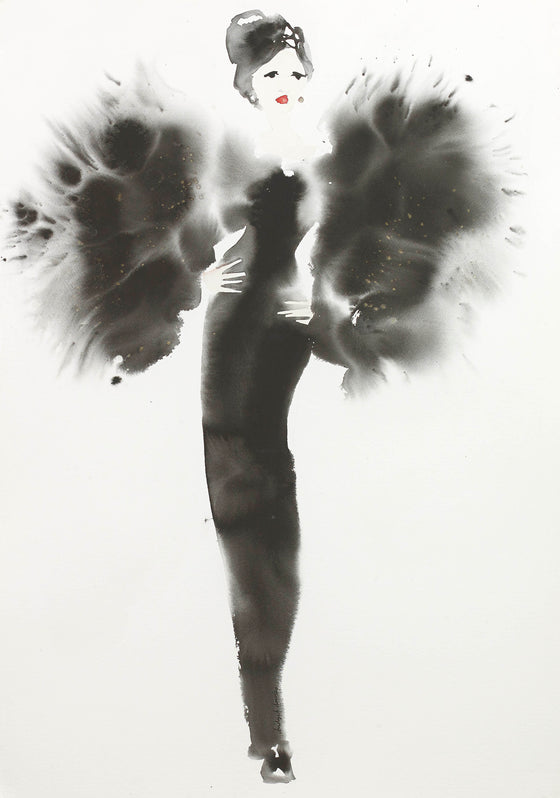 “I love to paint elegant women, in beautiful clothes, in glamorous settings. I’m not really inspired by fashion per se, as more by the feel of the fashion from the past; the Forties and Fifties in particular have a classic, ageless beauty expressed by fashions of the time. I am influenced enormously by the elegant and beautiful fashion drawings by illustrators of this period, as well as contemporary fashion artists and illustrators working today. I love the playful, flirty and romantic story telling in the work of illustrators such as Rene Gruau and Andre-Edouard Marty to name but a few.”