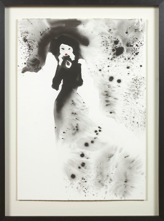 “I love to paint elegant women, in beautiful clothes, in glamorous settings. I’m not really inspired by fashion per se, as more by the feel of the fashion from the past; the Forties and Fifties in particular have a classic, ageless beauty expressed by fashions of the time. I am influenced enormously by the elegant and beautiful fashion drawings by illustrators of this period, as well as contemporary fashion artists and illustrators working today. I love the playful, flirty and romantic story telling in the work of illustrators such as Rene Gruau and Andre-Edouard Marty to name but a few.”