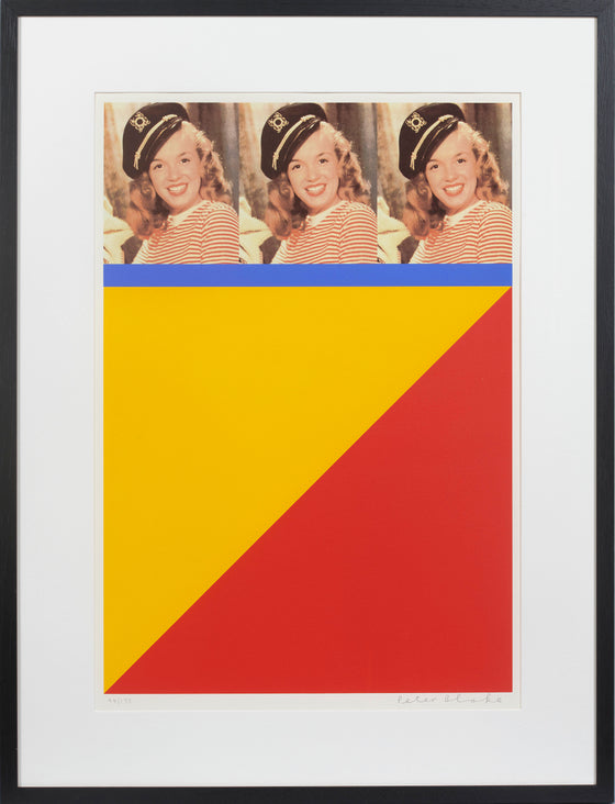 Peter Blake's work reflects his fascination with all streams of popular culture, and the beauty to be found in everyday objects and surroundings. Many of his works feature found printed materials such as photographs, comic strips or advertising texts, combined with bold geometric patterns and the use of primary colours. The works perfectly capture the effervescent and optimistic ethos of the sixties, but are also strikingly fresh and contemporary. There is also a strain of sentimentality and nostalgia running throughout his work, with particular focus towards childhood innocence and reminiscence, as can be seen clearly in his recent Alphabet series. Blake is renowned for his connection with the music industry, having produced iconic album covers for the Beatles, Paul Weller, The Who, and Oasis.
