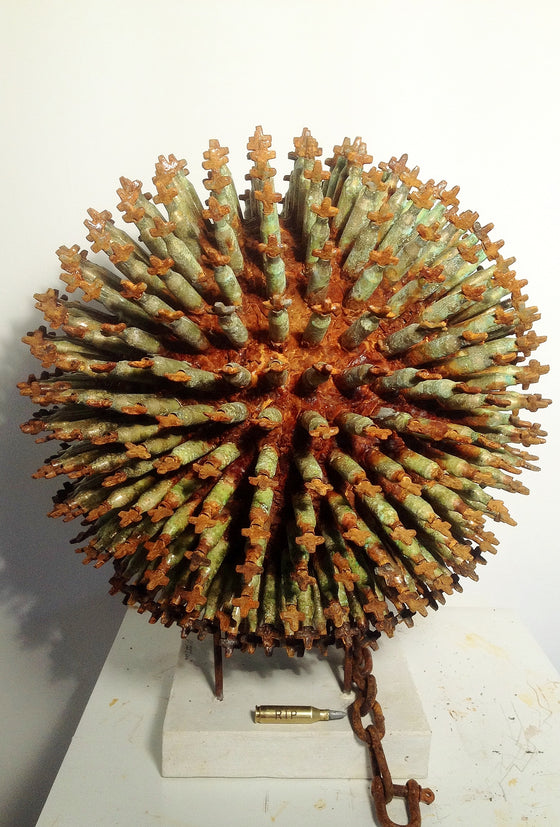 The art provides a subtle but vociferous comment on what the human race is up to. Not always heart warming but always mind stirring - what is certain is that the artworks are unique, vibrant, animated, often puzzling and extremely highly rated. There is a strong sense of structure and physics in her sculpting. Dee creates powerful and robust shapes and concepts but with balance which is ever present in natural physics. Incorporating unorthodox materials from steels to rusty HGV chains, she creates fantastical works that tell a personal story.