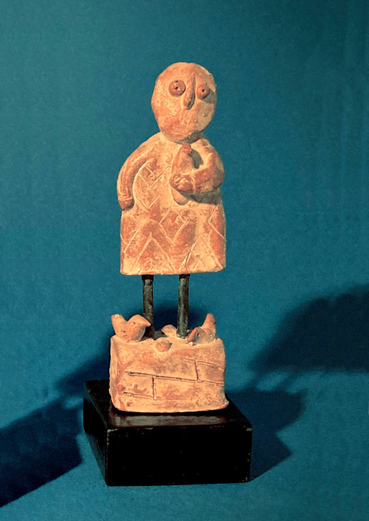 Inspired by an interest in folk art, religious and tribal art along and a good dash of whimsy he allows other influences, including the physical nature of the clay and his background in illustration to enter the creative mix.