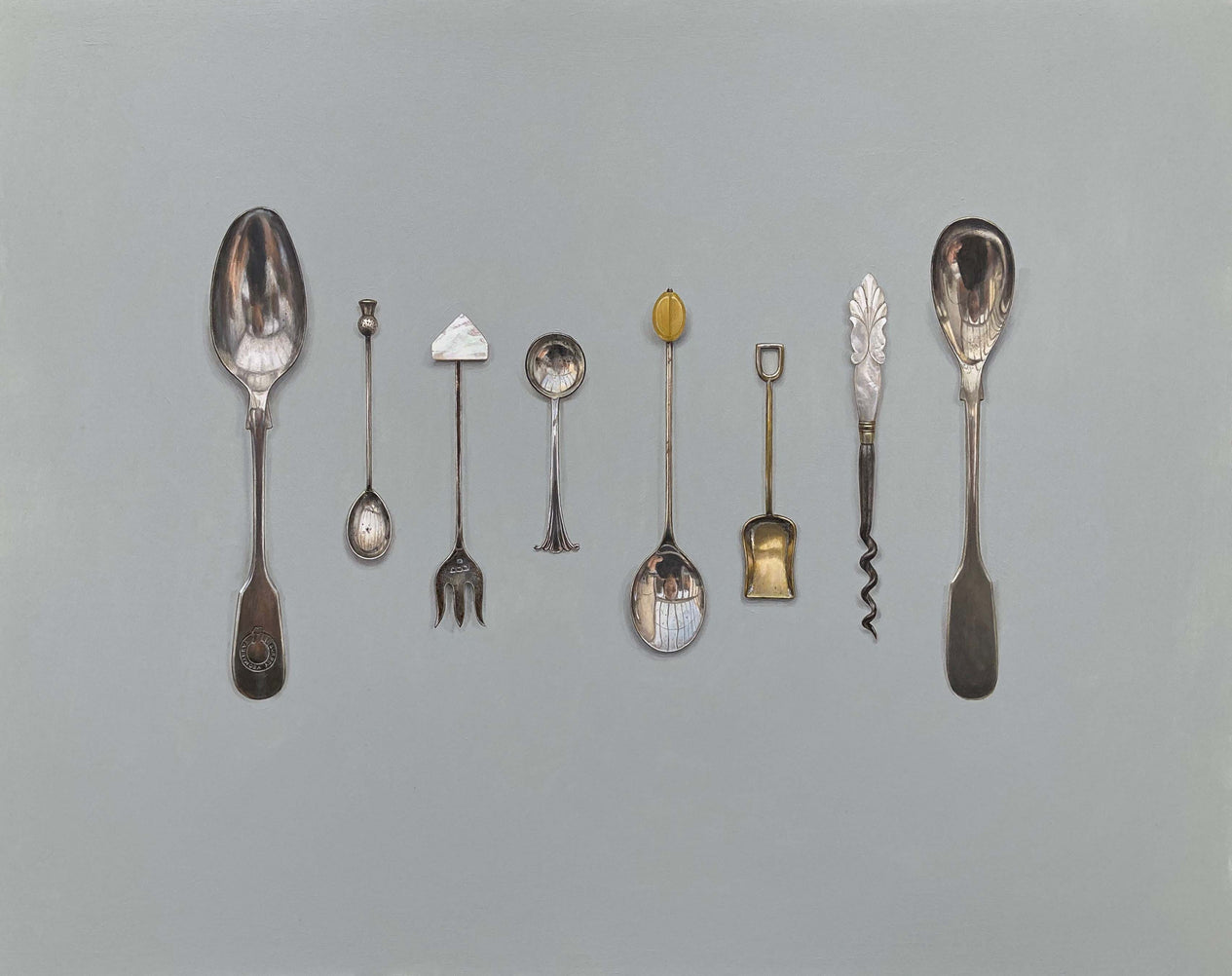 At first, I chose to paint the shoes that my children had outgrown, a subject matter with a strong emotional undertone for me.  Subsequent work has evolved from that. I get given or seek out possessions of others from the past. I like my subjects to be worn or handled. The patina they have developed of creases and scratches suggest the passing of time, a life lived. I take great care over composition presenting my subjects rather as if they are in a museum case. Ordinary objects often dismissed, presented with a heightened weight and meaning.