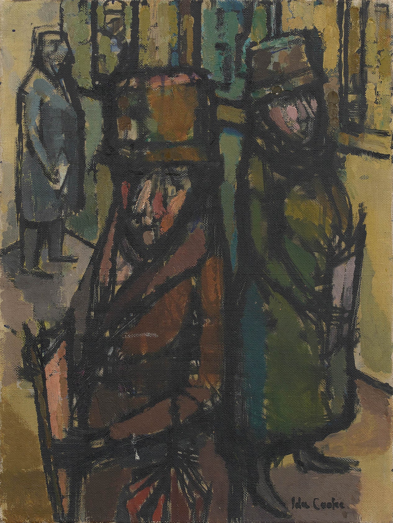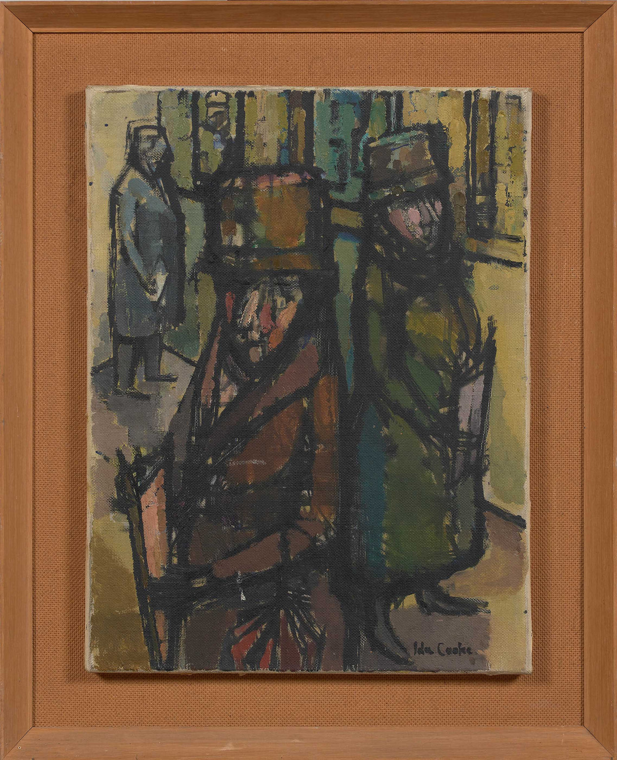 Post war, Ida built a flourishing portrait practice but in 1962 she journeyed to Austria to study under the German expressionist painter, Oscar Kokoschka at his School of Art at Salzburg. Perhaps as a consequence of her experience there, by the early 1960s she began to concentrate on genre paintings, inspired by characters and situations she encountered day to day. Her wry and somewhat satirical observations of human nature led to a distinctive series of imaginary scenarios in oils. The modernist aesthetic that permeates her work has proved timeless to collectors of the post war and current era and her paintings still feel contemporary and enjoyably accessible today.