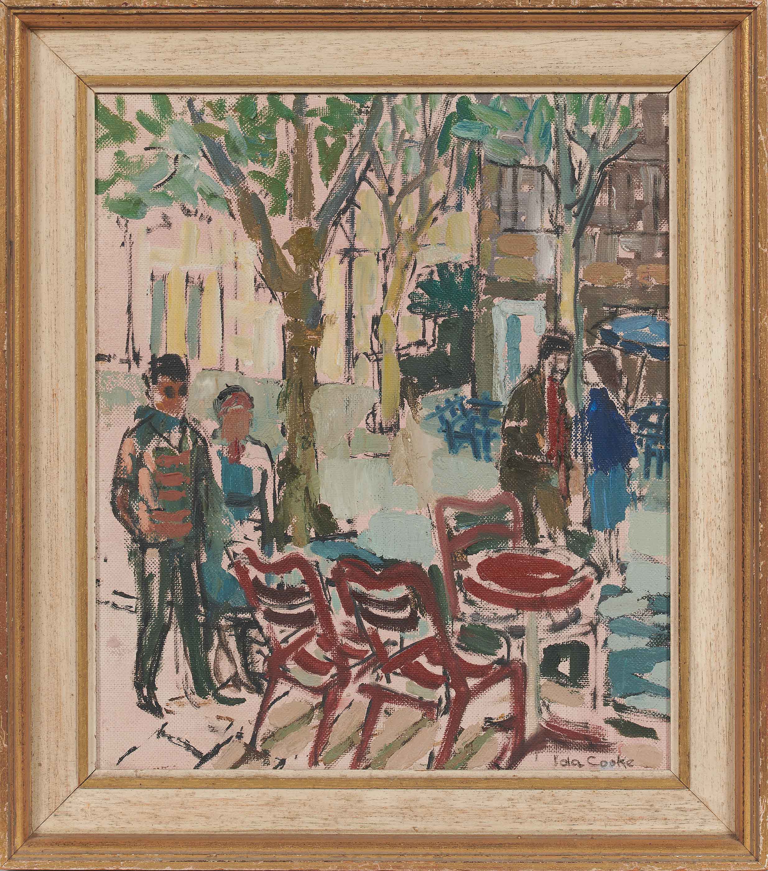Post war, Ida built a flourishing portrait practice but in 1962 she journeyed to Austria to study under the German expressionist painter, Oscar Kokoschka at his School of Art at Salzburg. Perhaps as a consequence of her experience there, by the early 1960s she began to concentrate on genre paintings, inspired by characters and situations she encountered day to day. Her wry and somewhat satirical observations of human nature led to a distinctive series of imaginary scenarios in oils. The modernist aesthetic that permeates her work has proved timeless to collectors of the post war and current era and her paintings still feel contemporary and enjoyably accessible today.