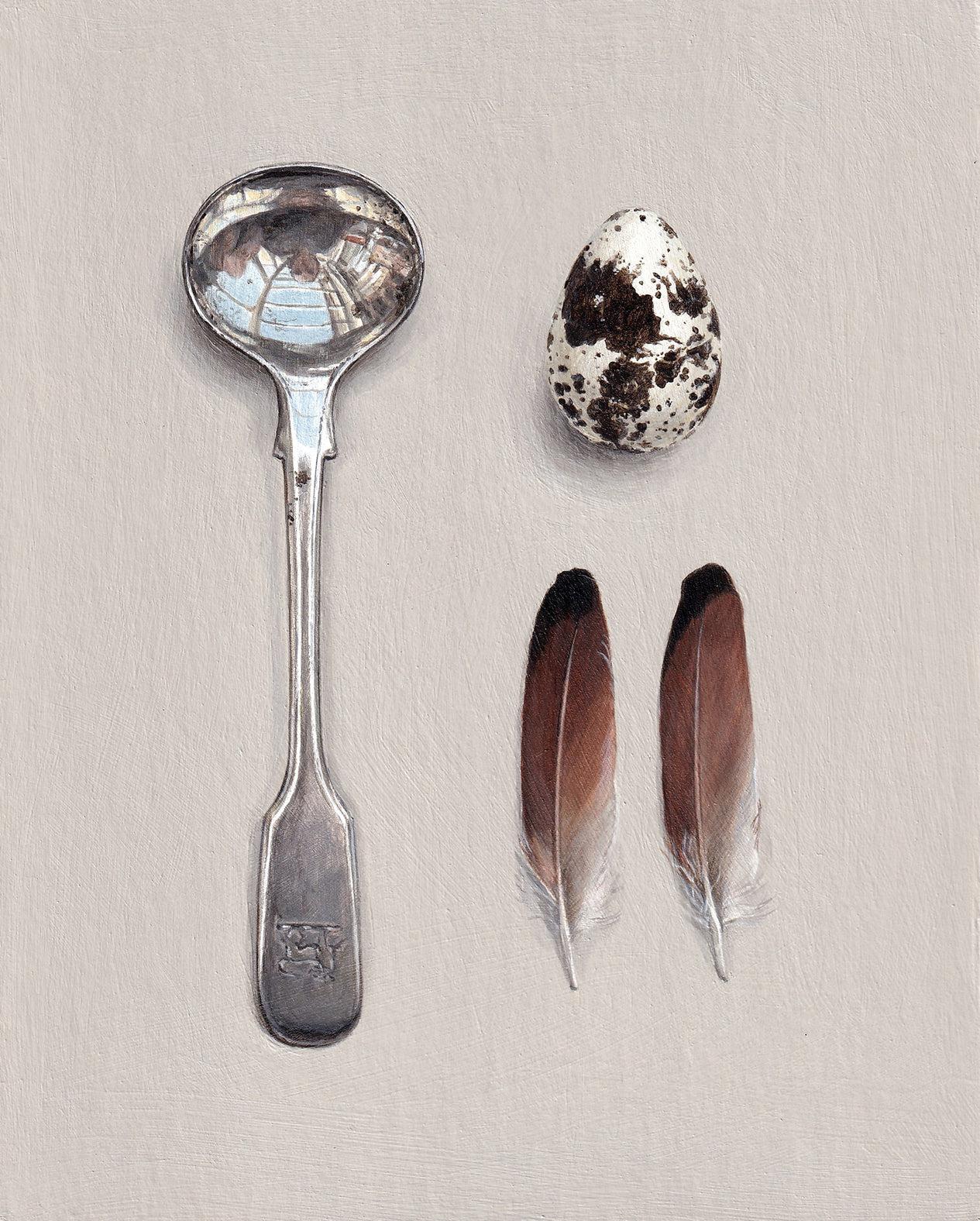 At first, I chose to paint the shoes that my children had outgrown, a subject matter with a strong emotional undertone for me.  Subsequent work has evolved from that. I get given or seek out possessions of others from the past. I like my subjects to be worn or handled. The patina they have developed of creases and scratches suggest the passing of time, a life lived. I take great care over composition presenting my subjects rather as if they are in a museum case. Ordinary objects often dismissed, presented with a heightened weight and meaning.