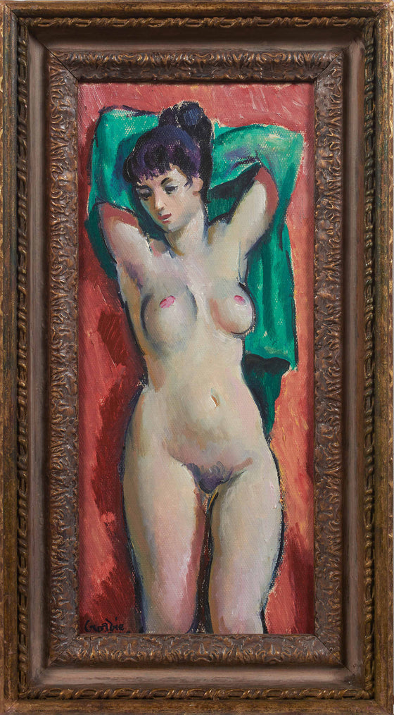 William Crosbie studied at the Glasgow School of Art from 1932 to 1935. A travelling scholarship took him to Paris, where he worked under Fernand Léger, and took classes in history of art at The Sorbonne and in drawing with Maillol. Crosbie was part of a group of artists and writers who were very active immediately before the Second World War painting portraits. Later in his career it was by working with architects, decorating firms and painting murals that he was able to make a living, and continue to create the paintings that he wanted to paint.