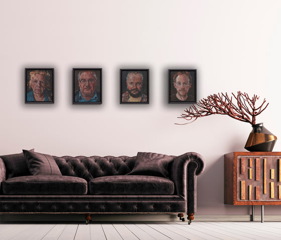 He paints using oils and mainly square brushes, working from the photographs that he takes of his sitters.  In 2008, he was runner up in the BP Portrait award and that same year was elected as a member of the Royal Society of Portrait painters (RP). He was their Vice-President from 2014 to 2021.