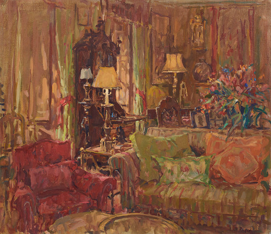 Sue’s work away from portraiture has proved even more successful, to the extent that the name Susan Ryder now conjures up images of the glorious interiors and sunlit terraces for which she is so well known. She occupies a place amongst the great names of contemporary British Impressionism as represented by the New English Art Club – a society of like-minded artists that can trace its philosophical roots from John Singer Sargent and Augustus John, through Stanley Spencer, to the present day and now includes Ken Howard, Tom Coates, Fred Cuming and Jane Corsellis. As a leading proponent of the New English style, Sue’s paintings remain in constant demand despite the ascendency of conceptualism in the current market and other passing trends. Her regular solo exhibitions in London invariably sell out, fuelling an increasingly strong secondary market – an indication of the sustained interest and appreciation of her work.