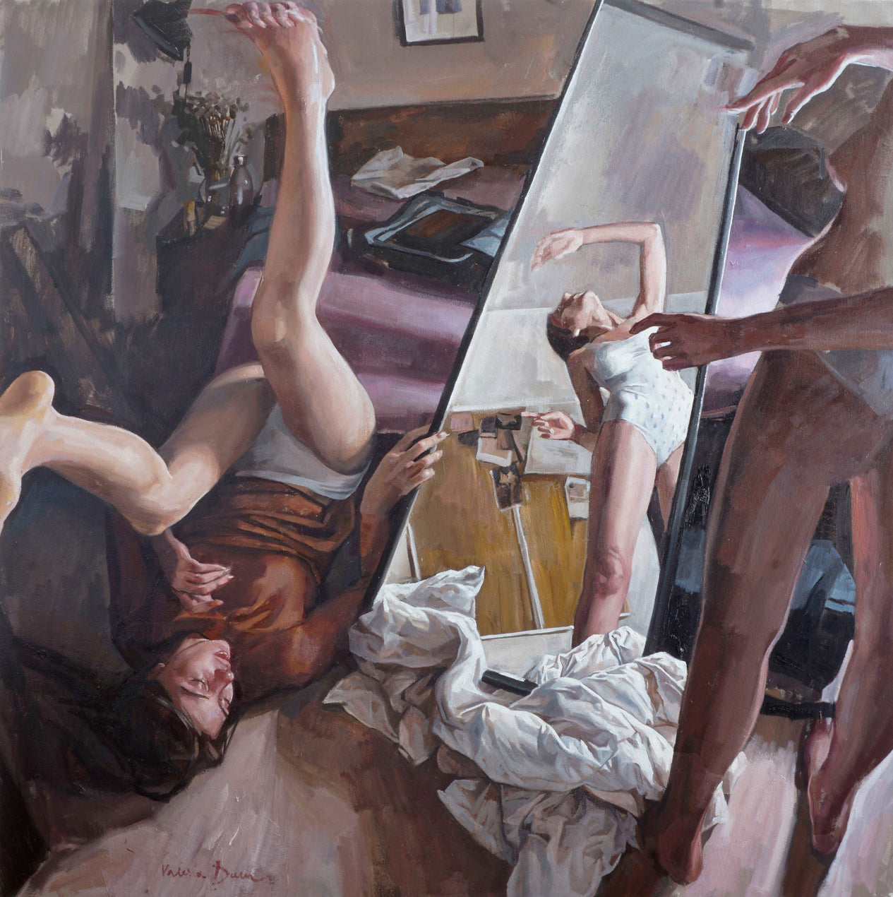 A young artist, Valeria is a rising star in the international figurative painting scene. Her works define the human condition through edgy, technically superb and often humorous self-portraits. Her recent collection of paintings is a deeply relatable account of one young woman’s frustrations during our lockdown global house arrest. A narrative depicting, if not a descent into madness, then at least a blurring of the edges of normality, at times flirting with the surreal.