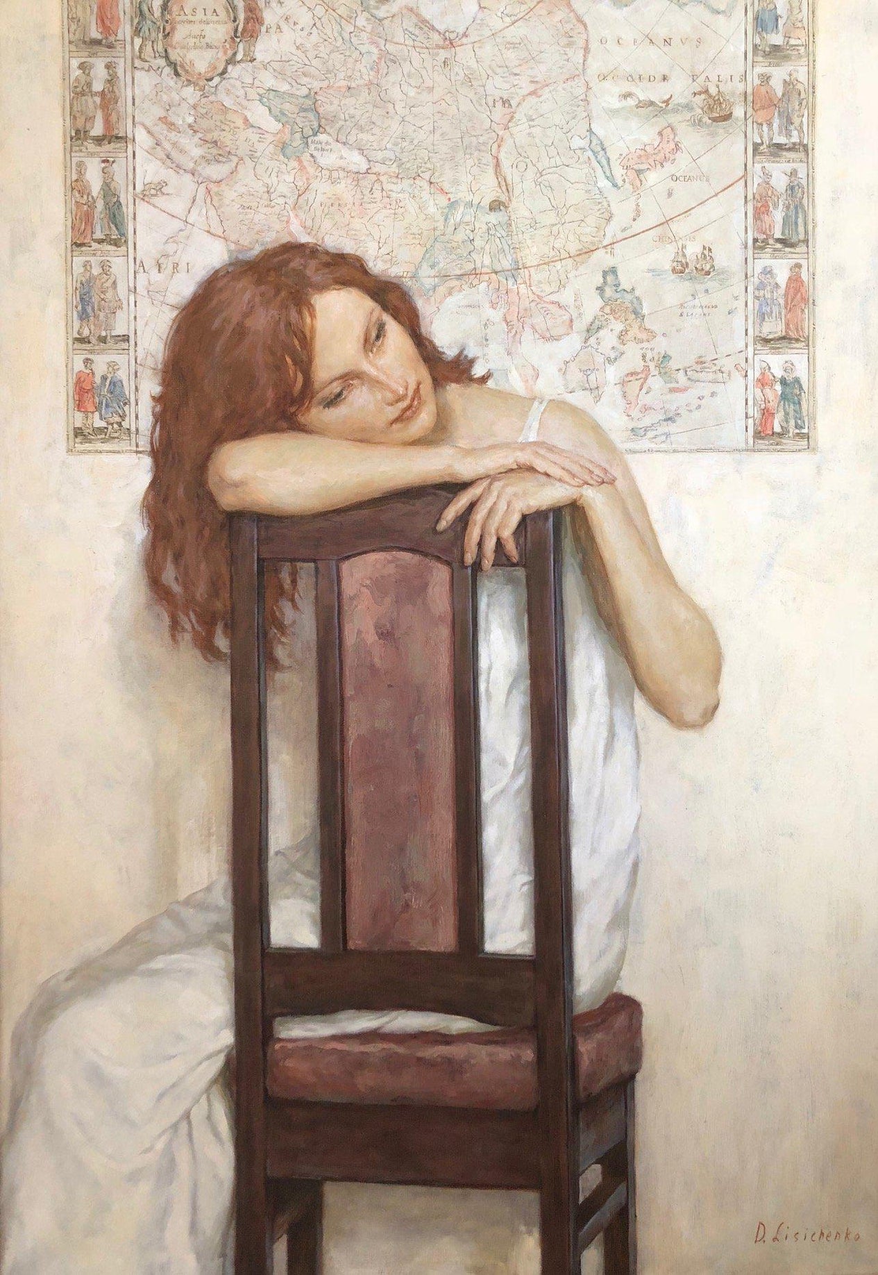 An artist and lover of art since childhood, over time he developed his delicate, romantic style. Lisichenko’s pieces are often of elegant, mysterious women in atmospheric surroundings and he uses a distinctive palette of soft, pastel shades. His paintings follow in the tradition of the Russian Romantic Realists, such as the writer and philosopher Ayn Rand.