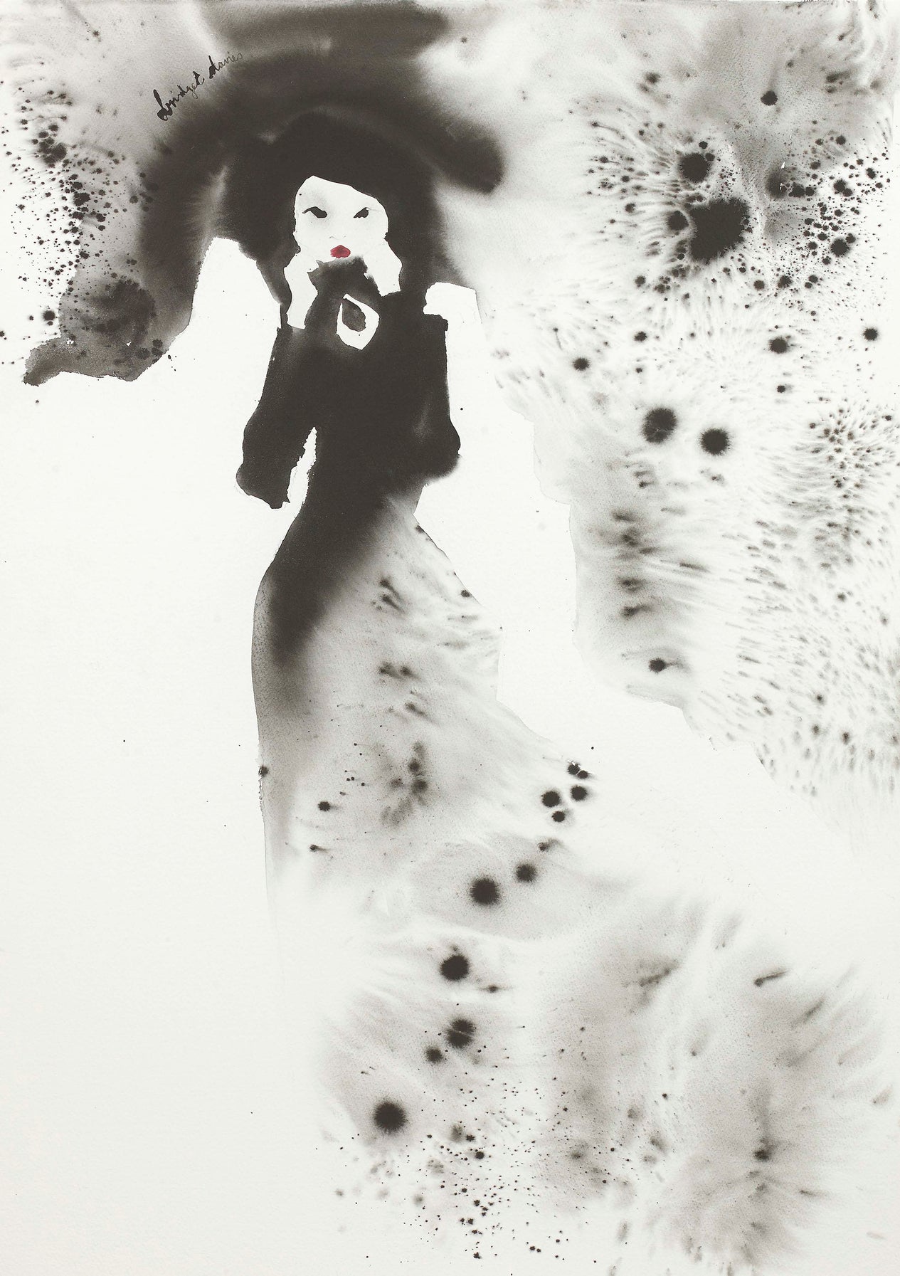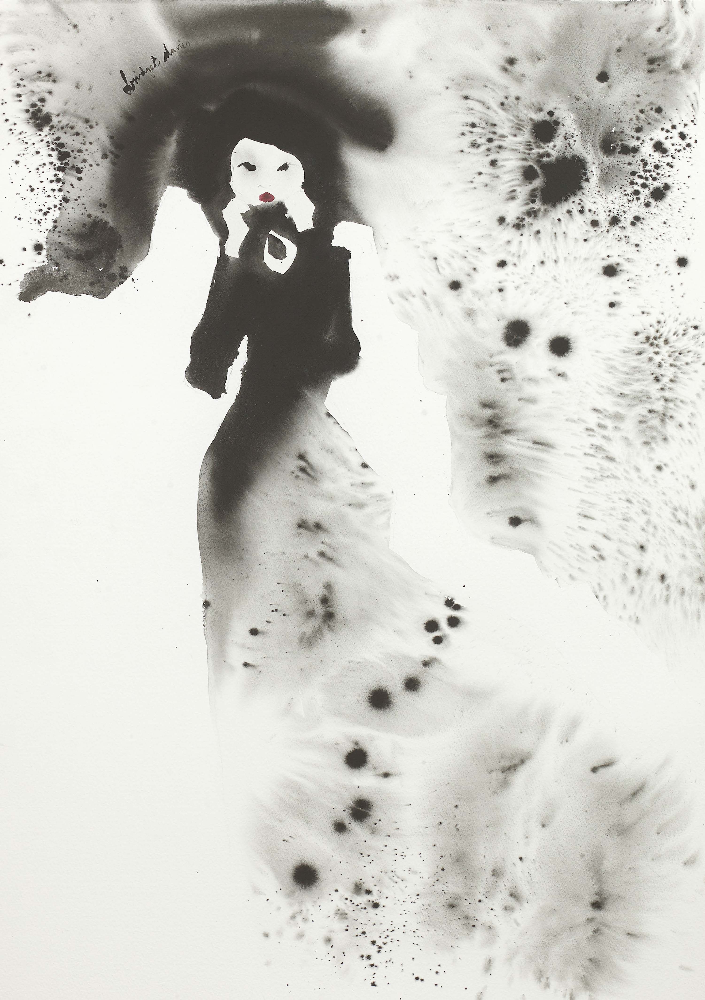 “I love to paint elegant women, in beautiful clothes, in glamorous settings. I’m not really inspired by fashion per se, as more by the feel of the fashion from the past; the Forties and Fifties in particular have a classic, ageless beauty expressed by fashions of the time. I am influenced enormously by the elegant and beautiful fashion drawings by illustrators of this period, as well as contemporary fashion artists and illustrators working today. I love the playful, flirty and romantic story telling in the work of illustrators such as Rene Gruau and Andre-Edouard Marty to name but a few.”