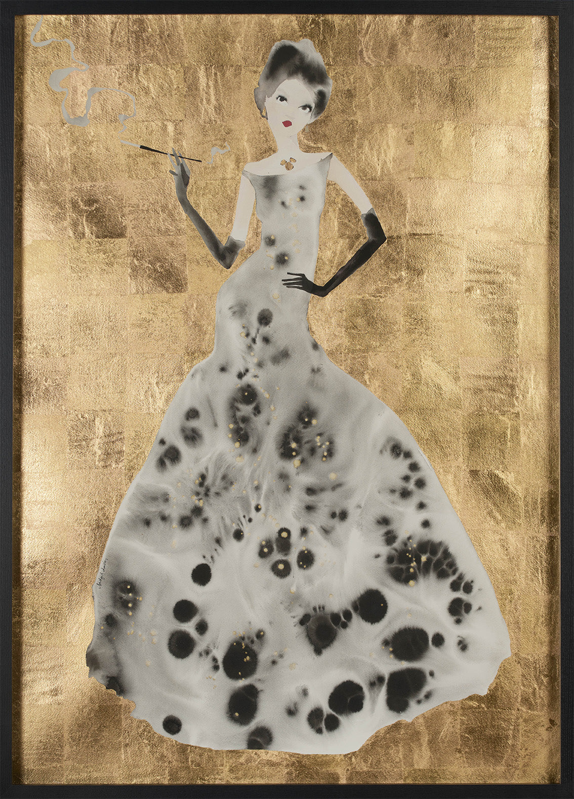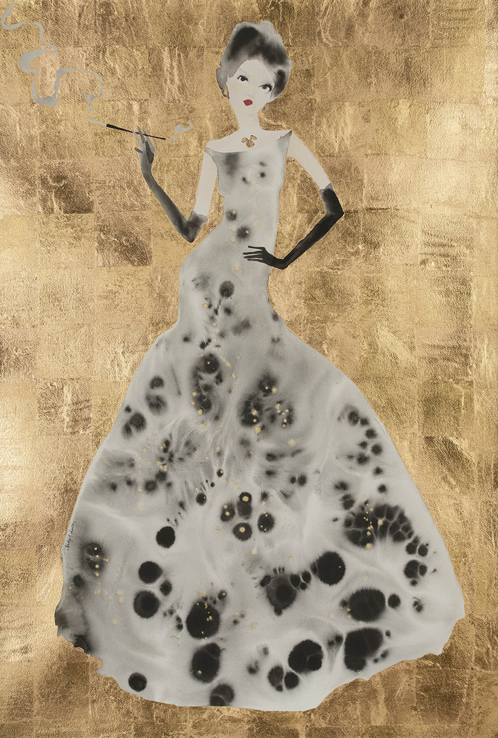 “I love to paint elegant women, in beautiful clothes, in glamorous settings. I’m not really inspired by fashion per se, as more by the feel of the fashion from the past; the Forties and Fifties in particular have a classic, ageless beauty expressed by fashions of the time. I am influenced enormously by the elegant and beautiful fashion drawings by illustrators of this period, as well as contemporary fashion artists and illustrators working today. I love the playful, flirty and romantic story telling in the work of illustrators such as Rene Gruau and Andre-Edouard Marty to name but a few.”