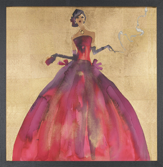 “I love to paint elegant women, in beautiful clothes, in glamorous settings. I’m not really inspired by fashion per se, as more by the feel of the fashion from the past; the Forties and Fifties in particular have a classic, ageless beauty expressed by fashions of the time. I am influenced enormously by the elegant and beautiful fashion drawings by illustrators of this period, as well as contemporary fashion artists and illustrators working today. I love the playful, flirty and romantic story telling in the work of illustrators such as Rene Gruau and Andre-Edouard Marty to name but a few.”