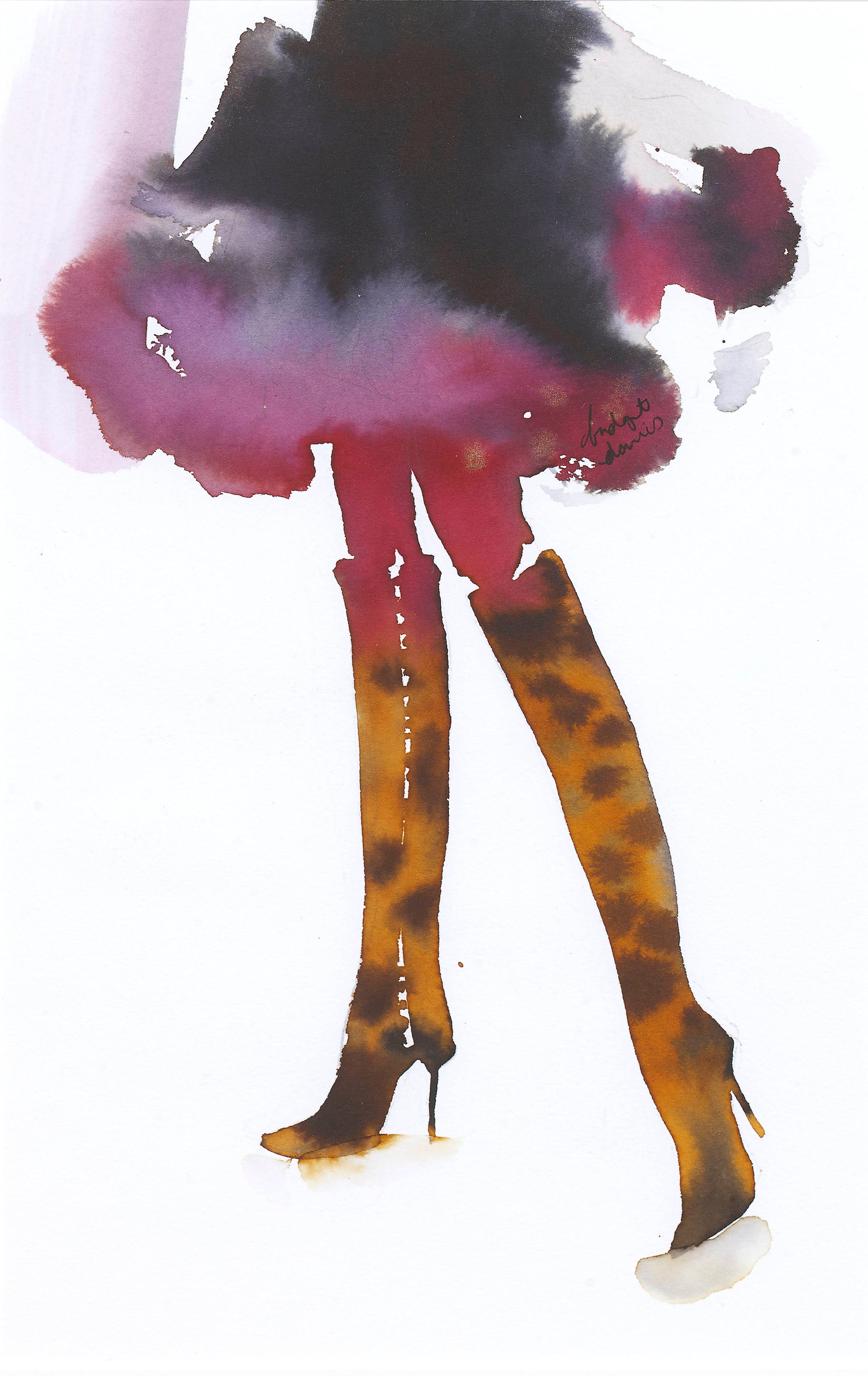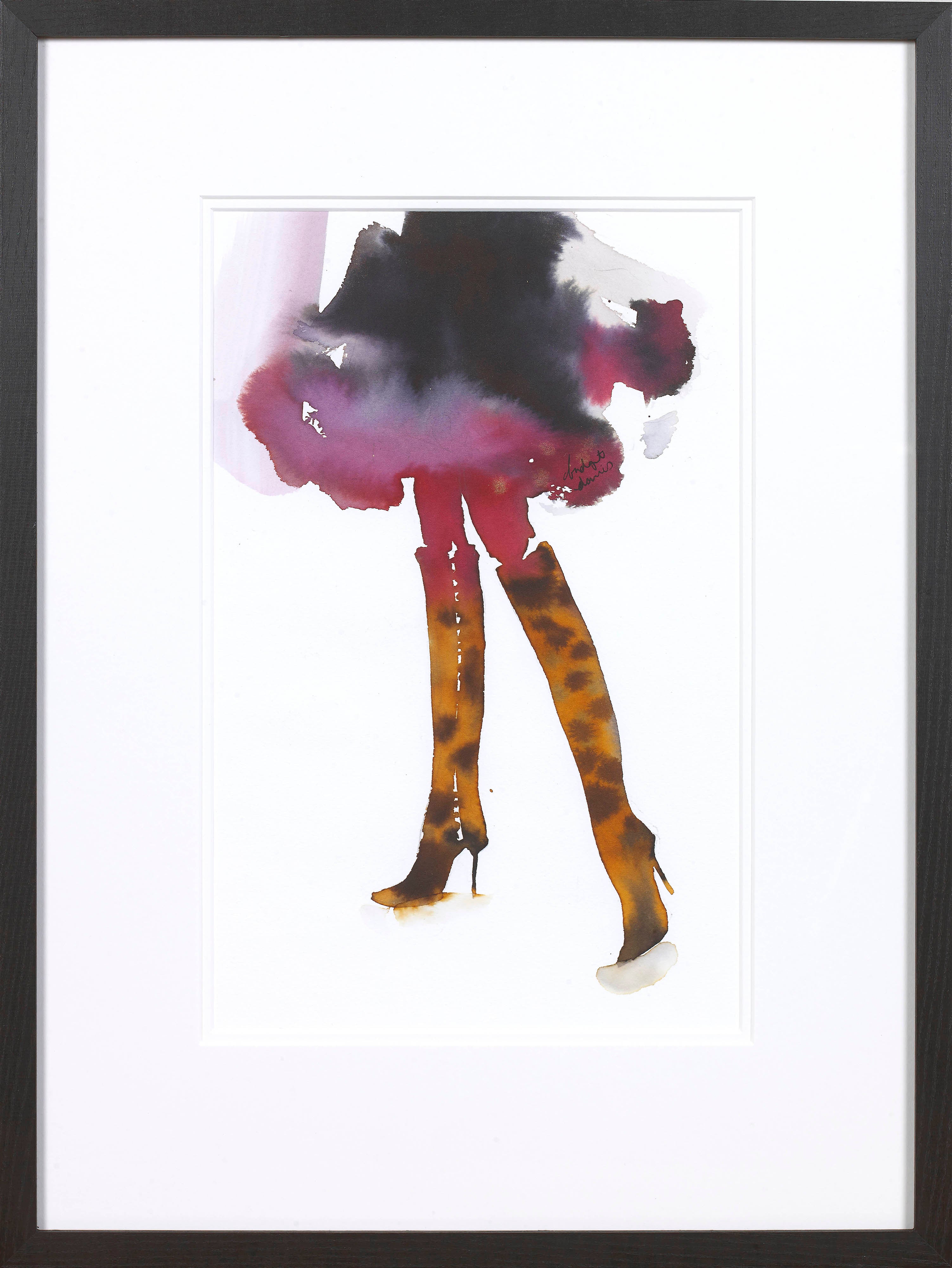 “I love to paint elegant women, in beautiful clothes, in glamorous settings. I’m not really inspired by fashion per se, as more by the feel of the fashion from the past; the Forties and Fifties in particular have a classic, ageless beauty expressed by fashions of the time. I am influenced enormously by the elegant and beautiful fashion drawings by illustrators of this period, as well as contemporary fashion artists and illustrators working today. I love the playful, flirty and romantic story telling in the work of illustrators such as Rene Gruau and Andre-Edouard Marty to name but a few.”