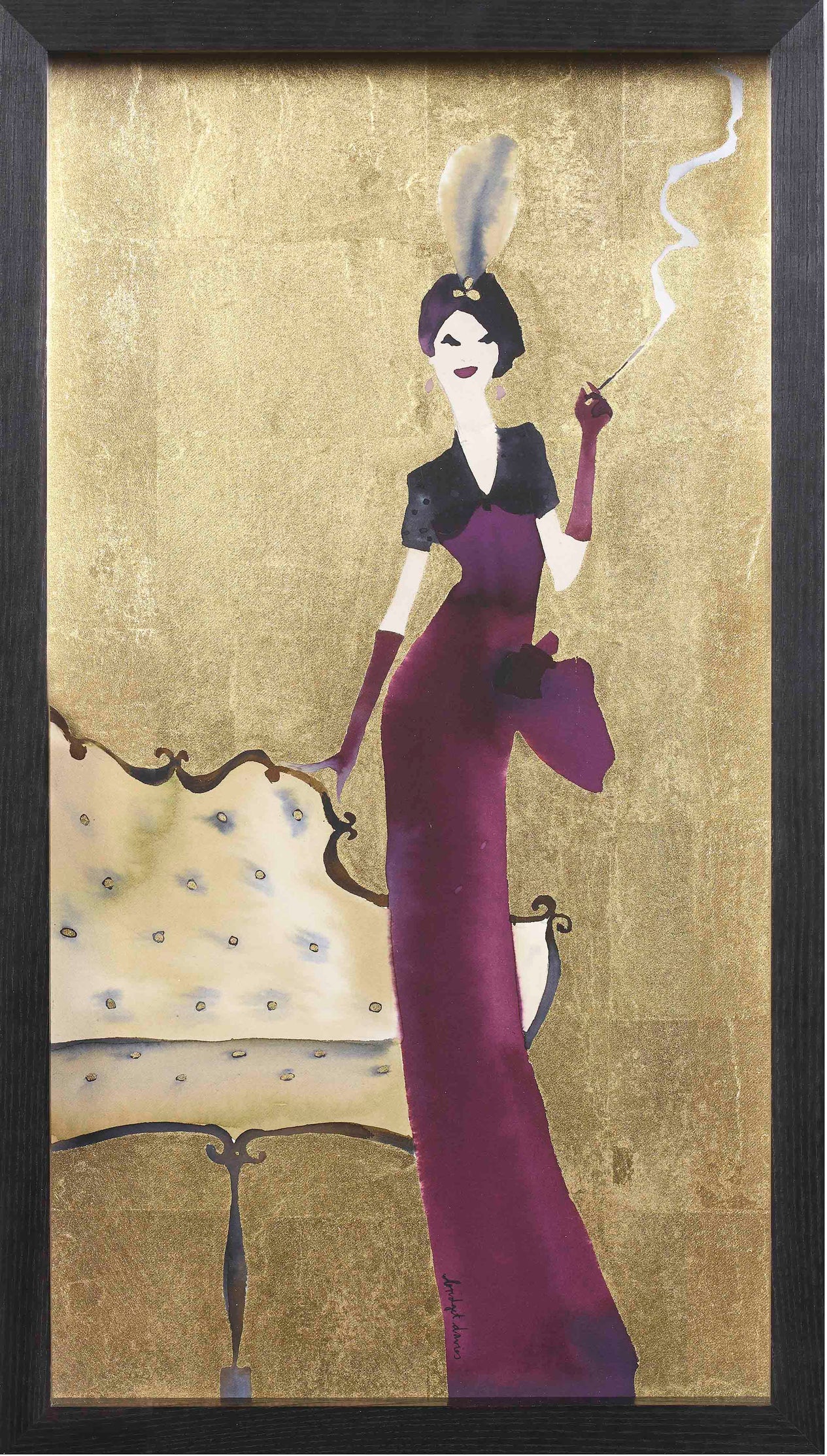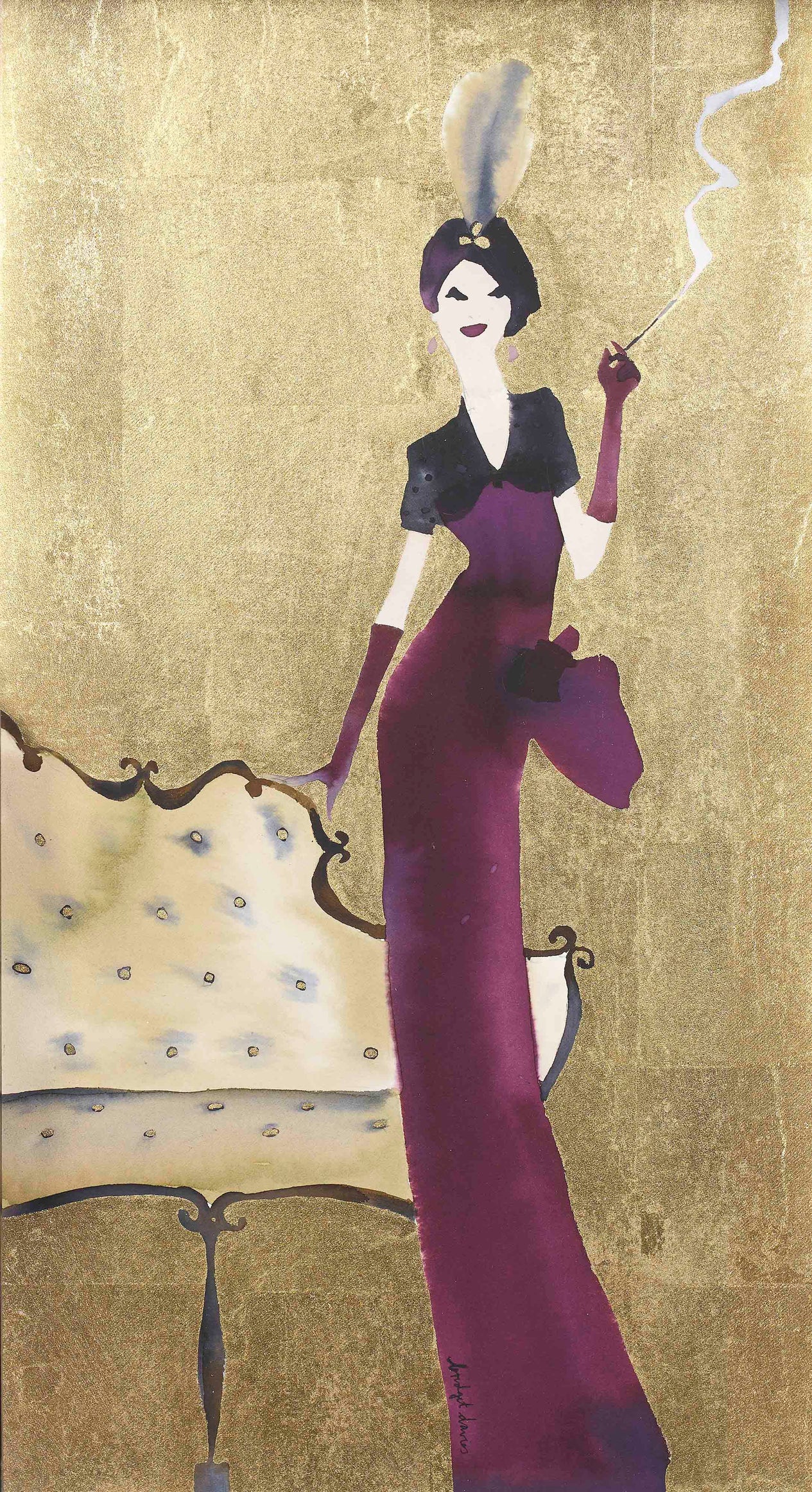 “I love to paint elegant women, in beautiful clothes, in glamorous settings. I’m not really inspired by fashion per se, as more by the feel of the fashion from the past; the Forties and Fifties in particular have a classic, ageless beauty expressed by fashions of the time. I am influenced enormously by the elegant and beautiful fashion drawings by illustrators of this period, as well as contemporary fashion artists and illustrators working today. I love the playful, flirty and romantic story telling in the work of illustrators such as Rene Gruau and Andre-Edouard Marty to name but a few.”