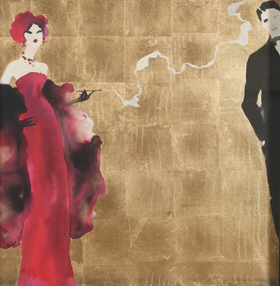 “I love to paint elegant women, in beautiful clothes, in glamorous settings. I’m not really inspired by fashion per se, as more by the feel of the fashion from the past; the Forties and Fifties in particular have a classic, ageless beauty expressed by fashions of the time. I am influenced enormously by the elegant and beautiful fashion drawings by illustrators of this period, as well as contemporary fashion artists and illustrators working today. I love the playful, flirty and romantic story telling in the work of illustrators such as Rene Gruau and Andre-Edouard Marty to name but a few.”