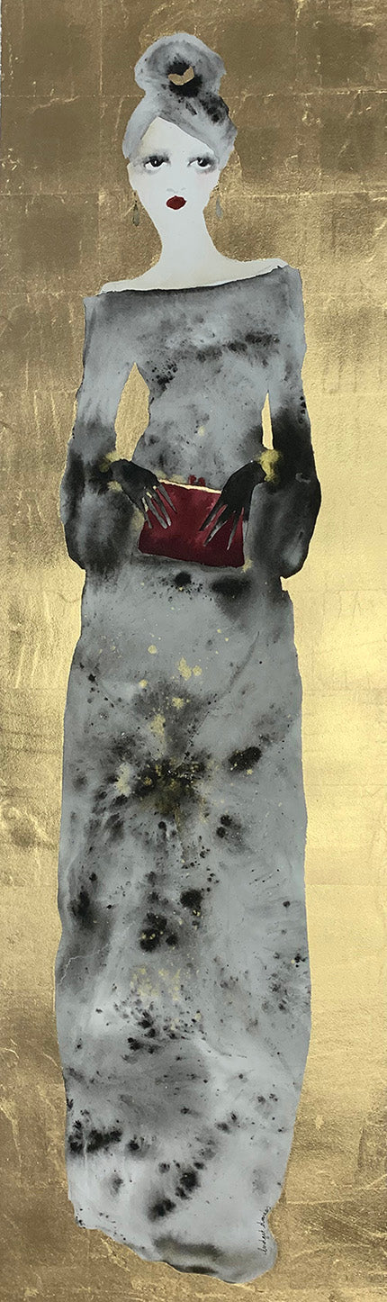 “I love to paint elegant women, in beautiful clothes, in glamorous settings. I’m not really inspired by fashion per se, as more by the feel of the fashion from the past; the Forties and Fifties in particular have a classic, ageless beauty expressed by fashions of the time. I am influenced enormously by the elegant and beautiful fashion drawings by illustrators of this period, as well as contemporary fashion artists and illustrators working today. I love the playful, flirty and romantic story telling in the work of illustrators such as Rene Gruau and Andre-Edouard Marty to name but a few.”