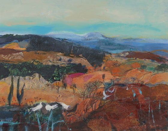 Christine studied at Gray’s School of Art in Aberdeen, graduating in 1963. Soon after she won the prestigious David Murray Scholarship for Landscape painting in 1966 and then the Hospitalfield Scholarship in 1968.  More recently in 1993 she was elected to membership of the RSW and two years later she won the Teachers Whisky Travel Scholarship at the RGI. This allowed her the travel opportunity of a visit to North Africa and the experience changed both her style and interpretation. The change marked a step forward in terms of recognition, and her works began to be bought and subsequently feature in a number of permanent collections. In 1996 her work was purchased for the Royal Scottish Academy as well as other similar bodies in different parts of the country. In 1999 she was elected as a Member of the RGI.