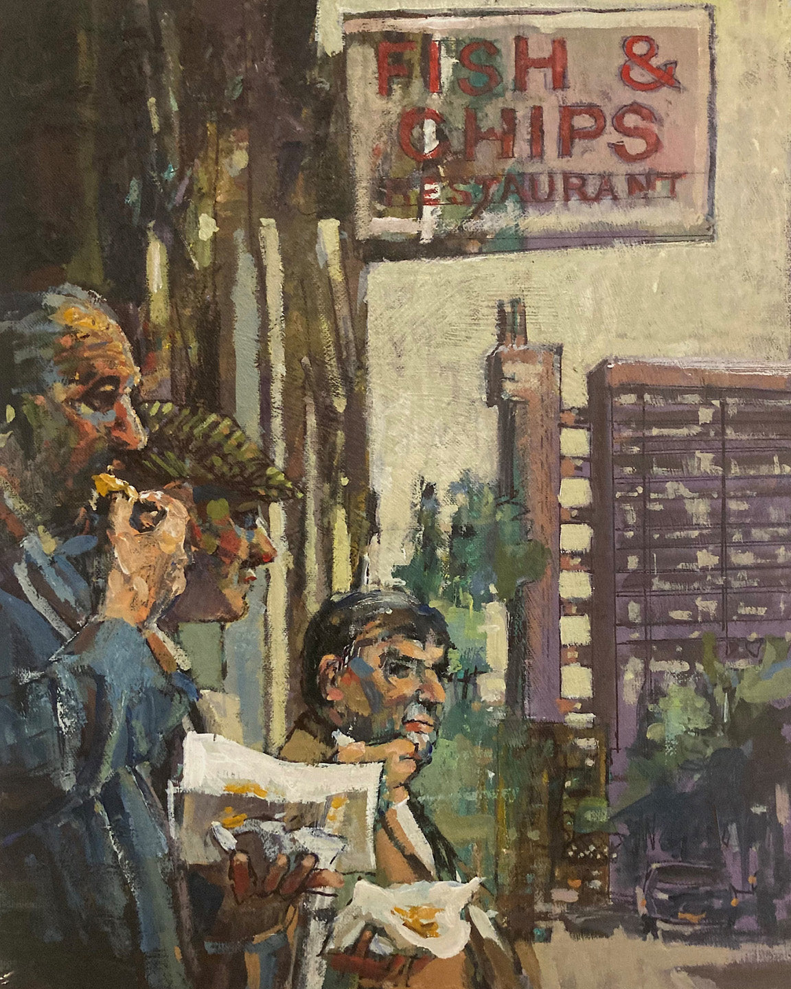 But he had never stopped painting. He returned to it full time when he moved to Cornwall and taught at Falmouth University of Arts. He says his aim is to always tell a story, a trait that has seen him elected a member of the St Ives Society of Artists and a regular at the NEAC. He currently exhibits across the country in London, Cornwall, Gloucestershire and Edinburgh galleries.