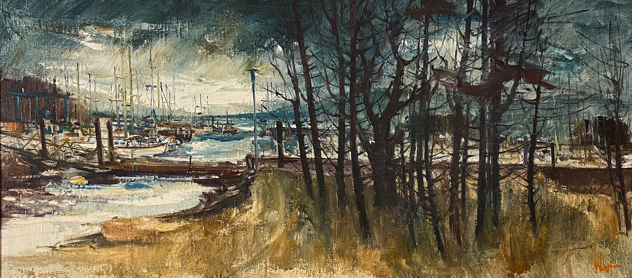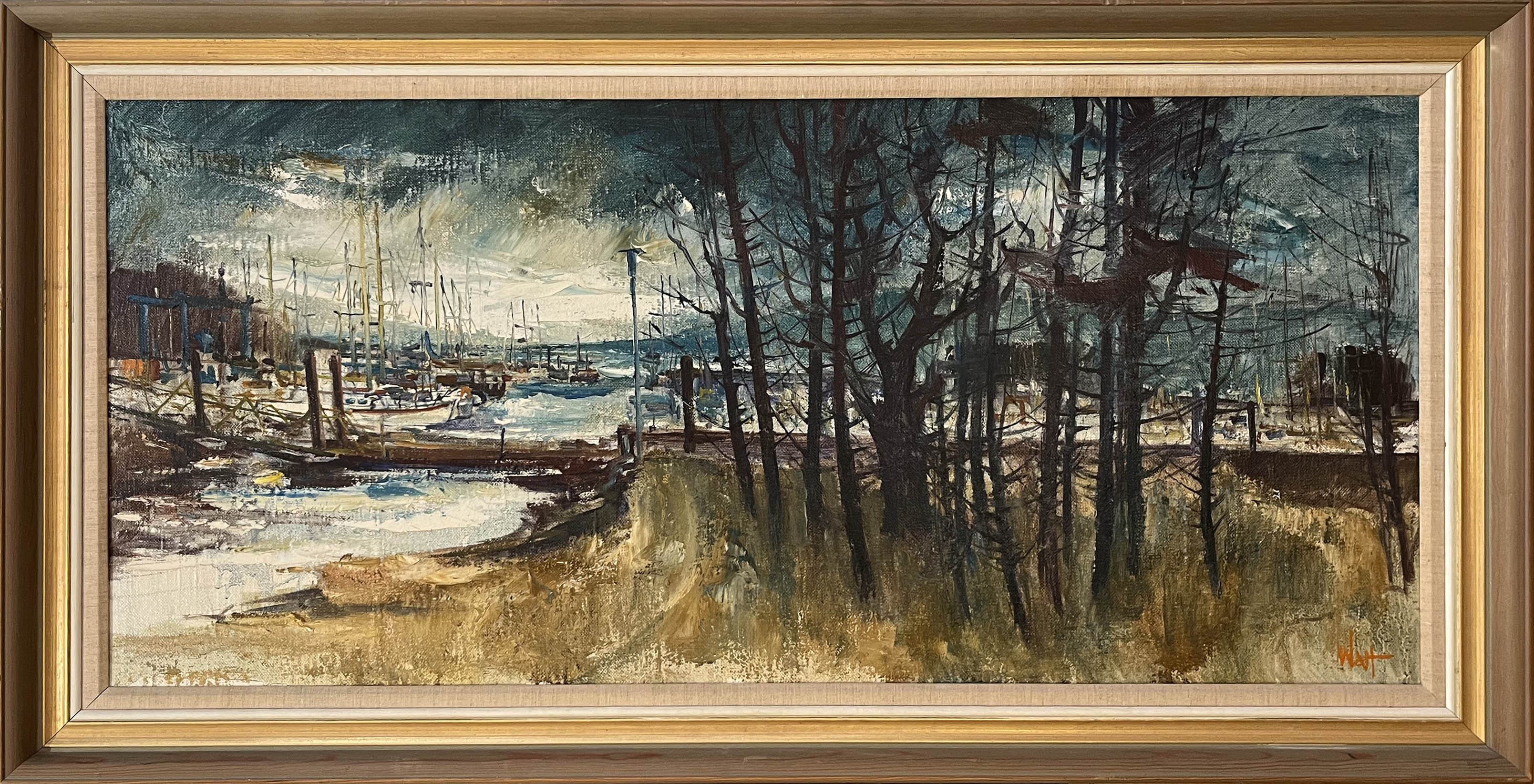 James was born in Port Glasgow to a family of Clyde shipbuilders. He studied at Glasgow School of Art under Douglas Percy Bliss and David Donaldson. In 1958, he was one of 13 founders of the Glasgow Group, an artists’ cooperative which continues to this day. He was a much loved art teacher both in secondary schools and evening classes at Glasgow School of Art. He dedicated much of his life to recording the River Clyde and its industries, and his vast body of work forms a vital archive of the river. Greenock’s McLean Museum and Art Gallery held an exhibition, The Lost Clyde: The Paintings of James Watt, to celebrate his 90th birthday. Collections include those of HM The Late Queen; The Late HRH The Prince Philip; The Princess Royal; The Arts Council; the Hunterian; Glasgow Museums; Paisley Museum & Art Gallery, amongst many others.