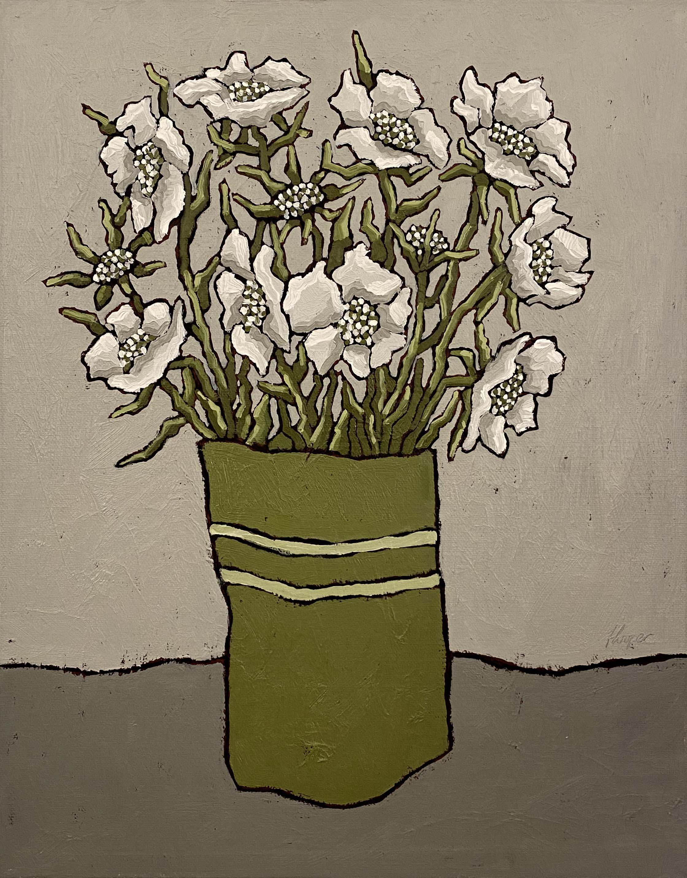 Born in 1968, Jane Hooper is a self taught artist living in a small village in Buckinghamshire. After 20 years of painting it is still life that has become a real passion. From her studio in High Wycombe Jane sets up collections of everyday objects that become the subject of her work. She works in oils with a muted palette trying to build shape colour and importantly texture. Always hoping to make the outcome look spontaneous, confident with a simple naivety.