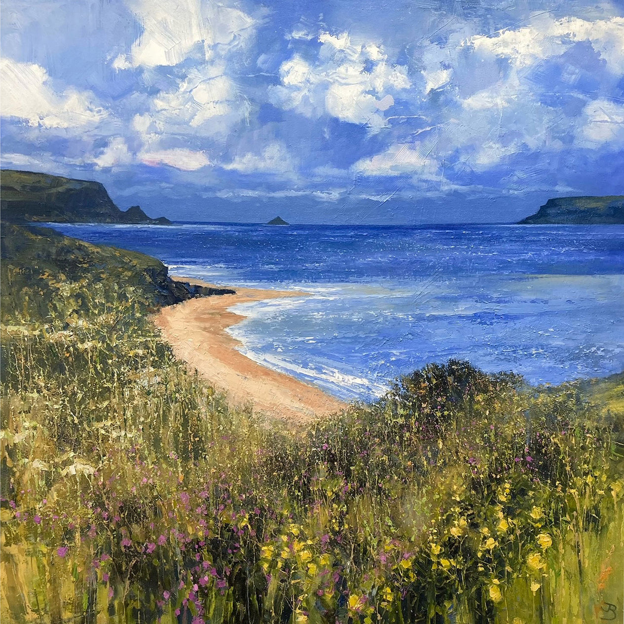 John was born in Plymouth and has painted continually since graduating from art college in the 1980s. Predominantly a landscape painter, John works en plein air, drawing on the dramatic panoramas of the coast of Cornwall and the West of Scotland for inspiration. His fresh elemental studies of sand and sea have attracted a large following across the UK and internationally. We have held regular solo exhibitions for John at Panter & Hall since 2004.