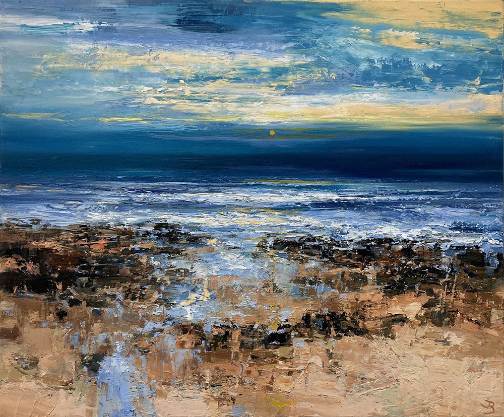 John was born in Plymouth and has painted continually since graduating from art college in the 1980s. Predominantly a landscape painter, John works en plein air, drawing on the dramatic panoramas of the coast of Cornwall and the West of Scotland for inspiration. His fresh elemental studies of sand and sea have attracted a large following across the UK and internationally. We have held regular solo exhibitions for John at Panter & Hall since 2004.
