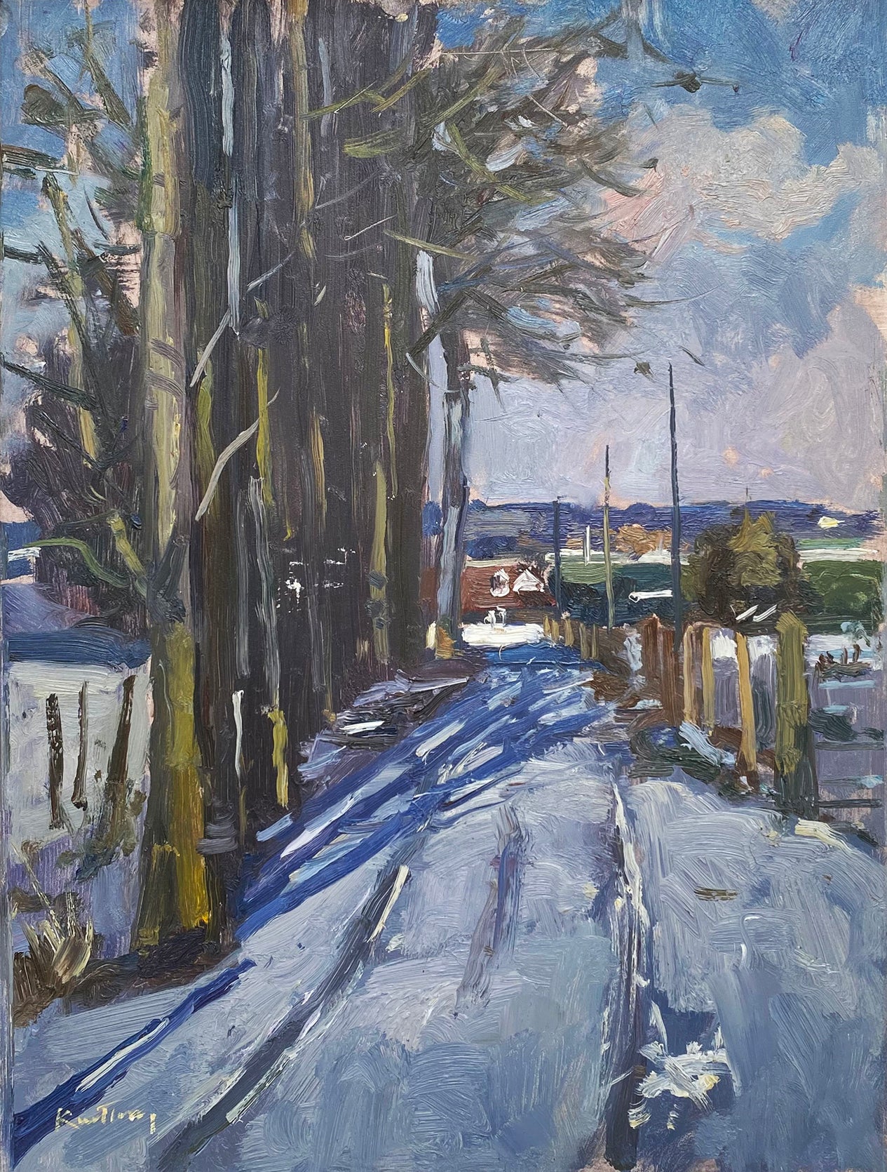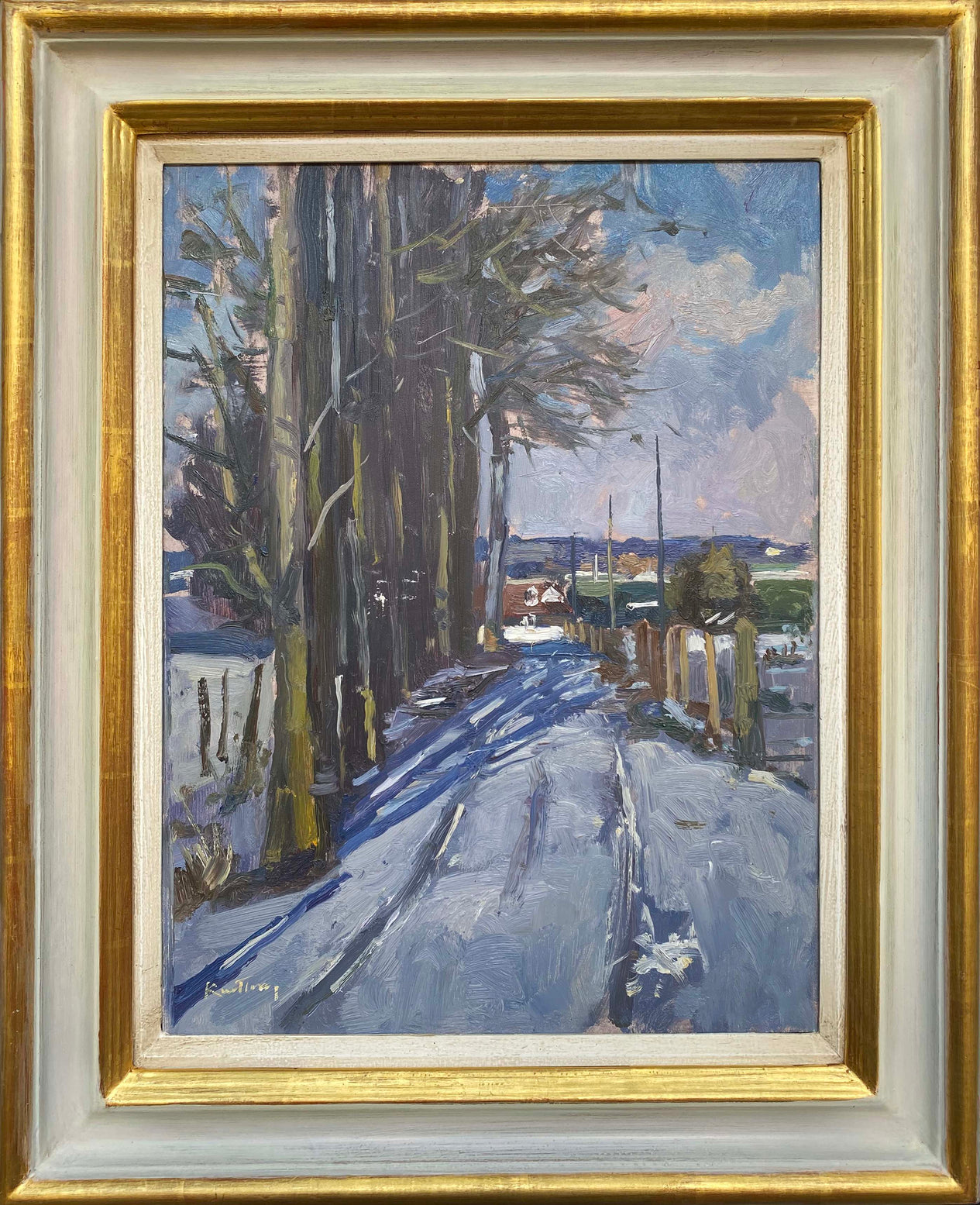 Contemporary British Artist Karl Terry 'Snow on the Farm Track' Kartl Terry 'Snow on the Farm Track' framed
