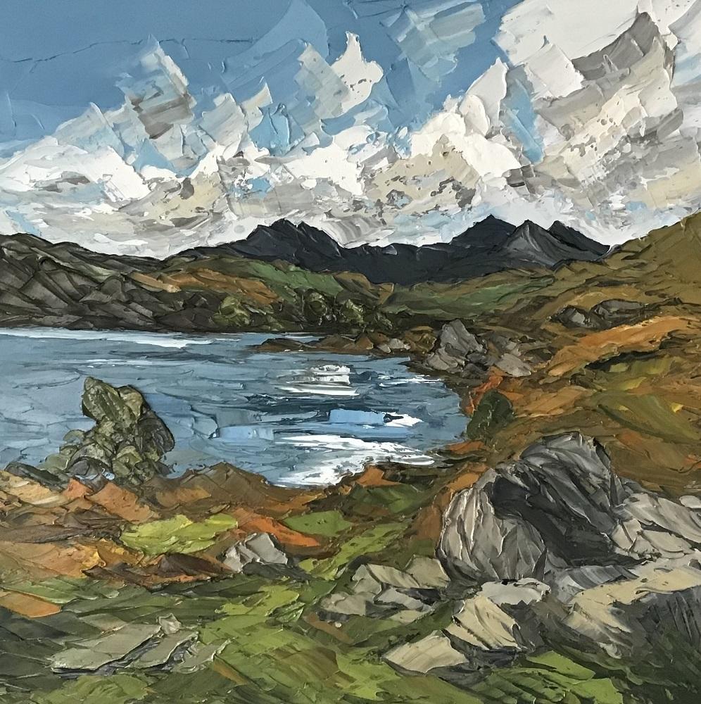 Llyn Mymbyr Welsh Artist Martin Llewellyn Painting Snowdonia in the style of Kyffin Williams, contemporary Welsh Art