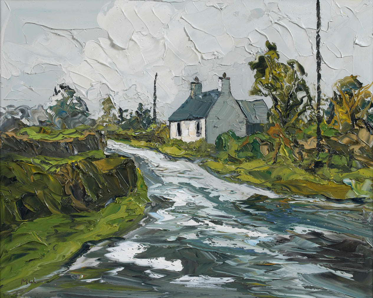 Martin is making a name for himself on the contemporary Welsh art market and we are delighted to be introducing his stunning work to our collectors east of the border. His paintings are steeped in the traditions of his antecedents in the twentieth century Welsh Art school, particularly Gwilym Prichard, Charles Wyatt Warren and of course Sir Kyffin Williams. His richly textured oils in a subtle, muted palette beautifully capture the distinctive atmosphere of North Wales whether depicting the drama of Snowdonia or the Irish Sea breaking against the shores of Anglesey.