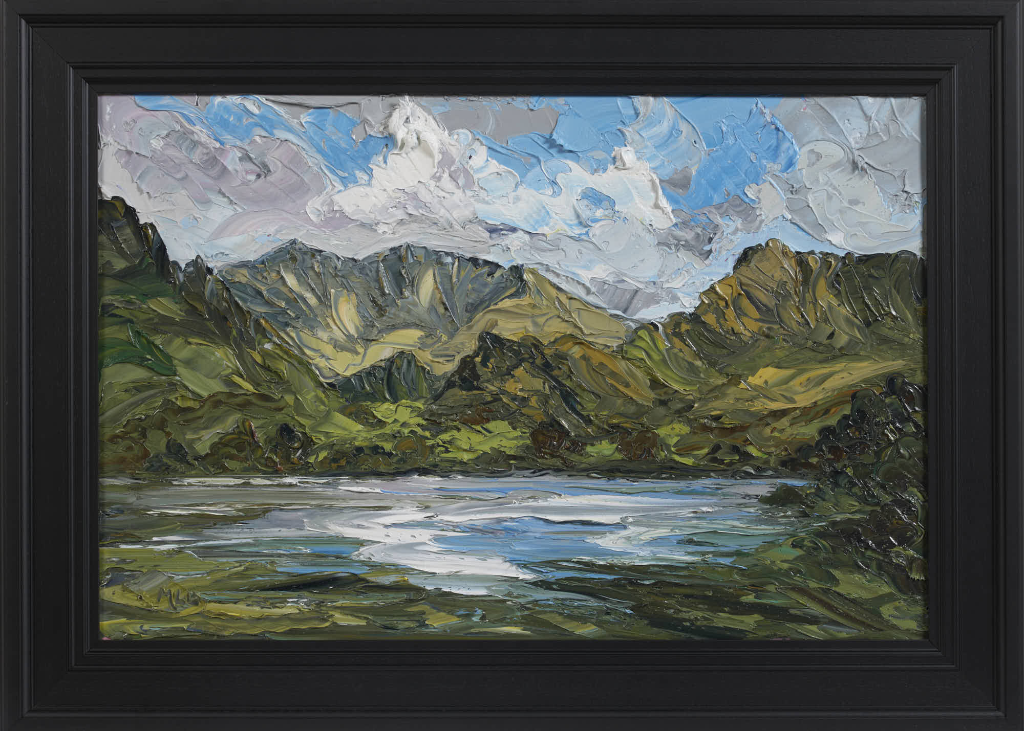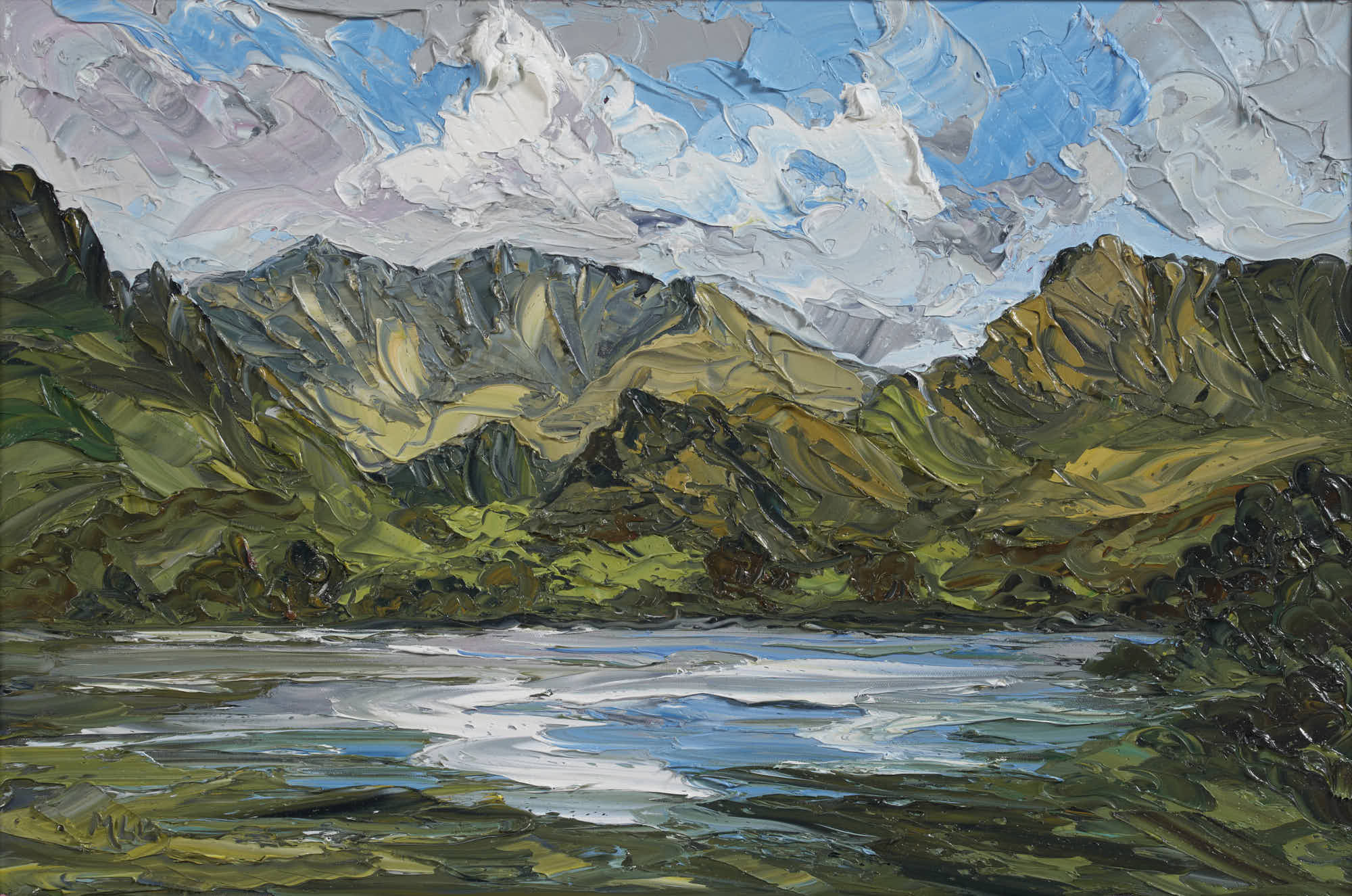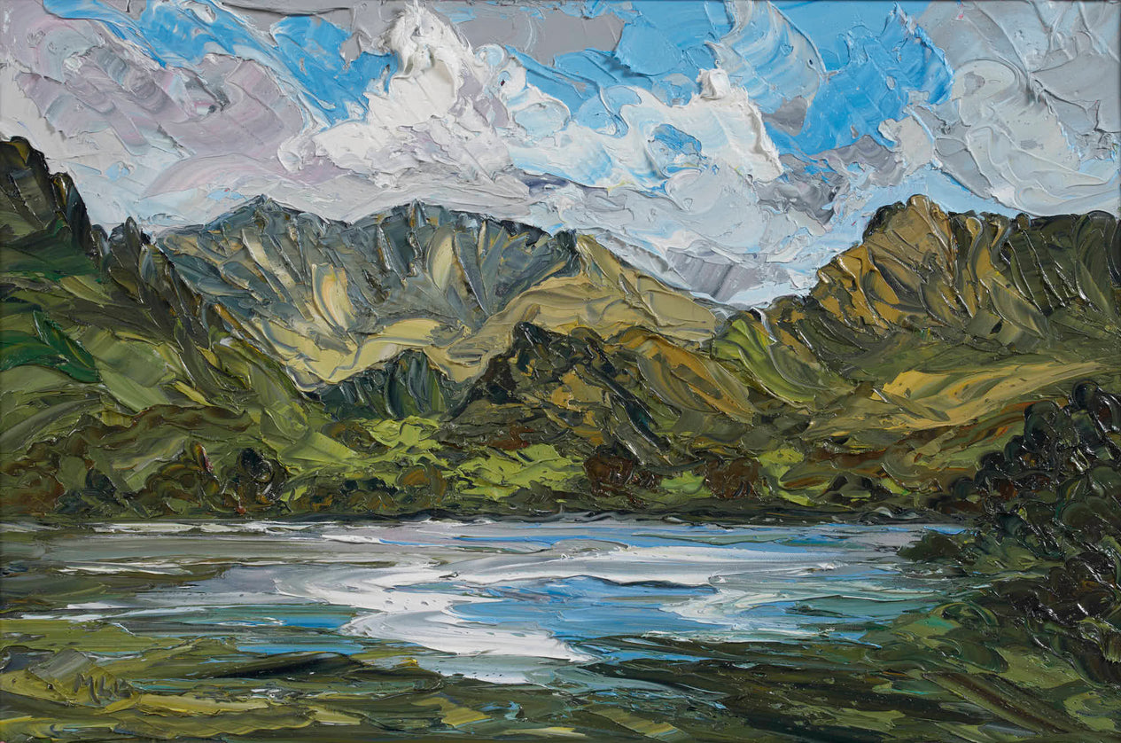 Martin is making a name for himself on the contemporary Welsh art market and we are delighted to be introducing his stunning work to our collectors east of the border. His paintings are steeped in the traditions of his antecedents in the twentieth century Welsh Art school, particularly Gwilym Prichard, Charles Wyatt Warren and of course Sir Kyffin Williams. His richly textured oils in a subtle, muted palette beautifully capture the distinctive atmosphere of North Wales whether depicting the drama of Snowdonia or the Irish Sea breaking against the shores of Anglesey.