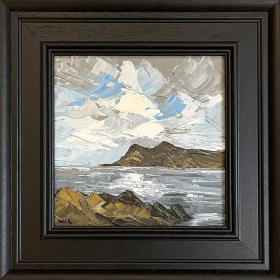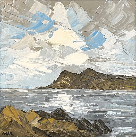 Martin is making a name for himself on the contemporary Welsh art market and we are delighted to be introducing his stunning work to our collectors east of the border. His paintings are steeped in the traditions of his antecedents in the twentieth century Welsh Art school, particularly Gwilym Prichard, Charles Wyatt Warren and of course Sir Kyffin Williams. His richly textured oils in a subtle, muted palette beautifully capture the distinctive atmosphere of North Wales whether depicting the drama of Snowdonia or the Irish Sea breaking against the shores of Anglesey.