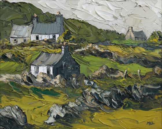 Martin is making a name for himself on the contemporary Welsh art market and we are delighted to be introducing his stunning work to our collectors east of the border. His paintings are steeped in the traditions of his antecedents in the twentieth century Welsh Art school, particularly Gwilym Prichard, Charles Wyatt Warren and of course Sir Kyffin Williams. His richly textured oils in a subtle, muted palette beautifully capture the distinctive atmosphere of North Wales whether depicting the drama of Snowdonia or the Irish Sea breaking against the shores of Anglesey.
