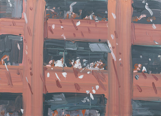 Quite a contemporary work for the current exhibition but I really admire the painterly quality of it. A modern impressionism, if there is such a thing, emulating the blur of a moving camera or a still of news footage. Tickertape parades are a distinctly American phenomena and I sense the slight distance this British artist seems to feel, a tourist recording something unfamiliar but equally exciting and fascinating in the experience. This is an earlyish work for Radford and quite different from his current output. A bit of a wild card but a powerful painting.