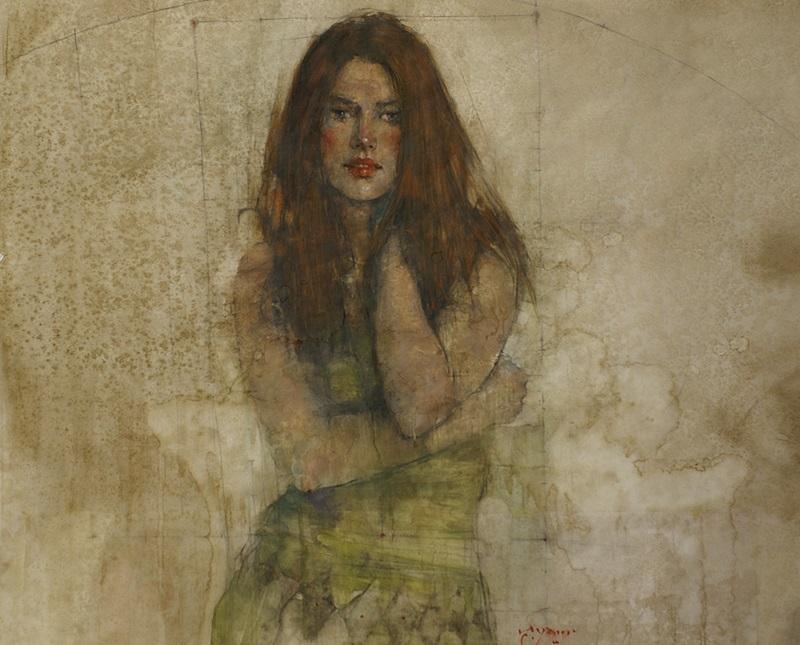 Michael’s intense involvement with each painting is evident in the carefully worked surfaces and the limited number of works he produces. Whilst remaining faithful to the tradition of figurative painting Michael employs a resolutely contemporary approach to his style of work. The combined application of different media such as, oil, pastel, graphite, gold-leaf and collage all lend richness to his work that adds depth to the overall image.