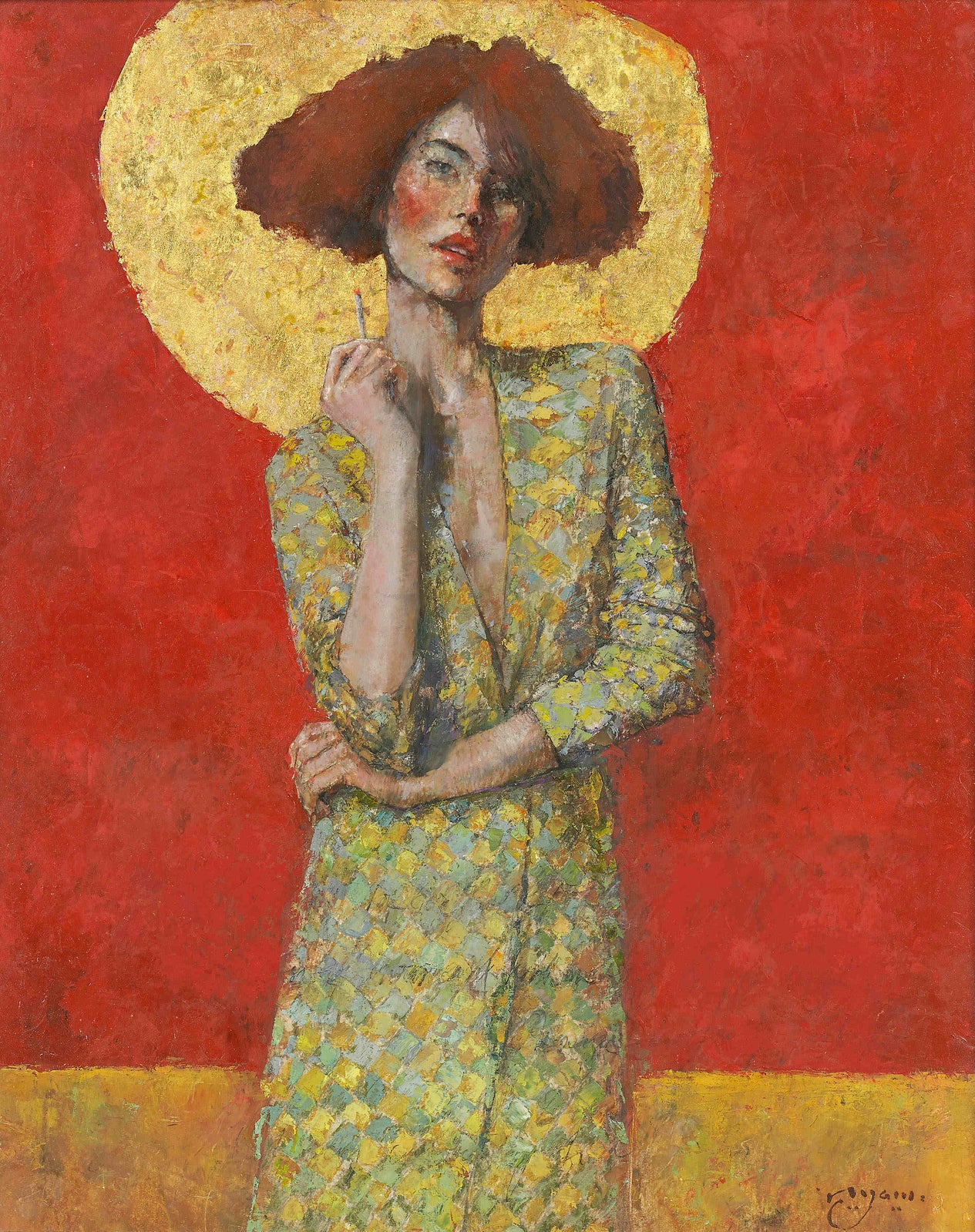 Michael’s intense involvement with each painting is evident in the carefully worked surfaces and the limited number of works he produces. Whilst remaining faithful to the tradition of figurative painting Michael employs a resolutely contemporary approach to his style of work. The combined application of different media such as, oil, pastel, graphite, gold-leaf and collage all lend richness to his work that adds depth to the overall image.