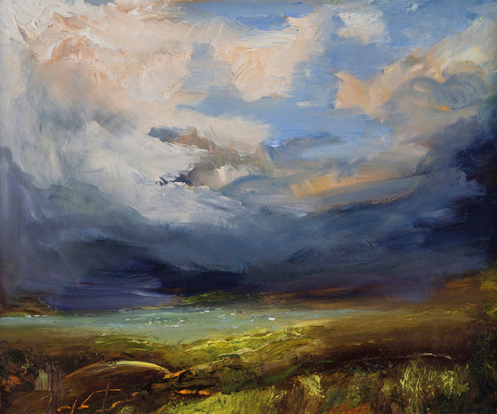 "Living in the Yorkshire Dales for the last four years and experiencing their dramatic ancient landscapes of Coverdale, Swaledale, Wensleydale and Richmondshire have brought new, thought provoking, ideas into my paintings. During these years I have painted the seasonal drama in this often remote countryside: depicting the turning of the wild purple heather clad moors during the middle of August, the extraordinary abundance of summer wild flowers, the first poppies and the inescapable harsh blizzards of winter snow.