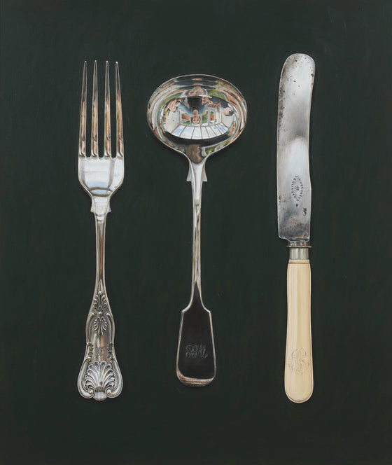At first, I chose to paint the shoes that my children had outgrown, a subject matter with a strong emotional undertone for me.  Subsequent work has evolved from that. I get given or seek out possessions of others from the past. I like my subjects to be worn or handled. The patina they have developed of creases and scratches suggest the passing of time, a life lived. I take great care over composition presenting my subjects rather as if they are in a museum case. Ordinary objects often dismissed, presented with a heightened weight and meaning.