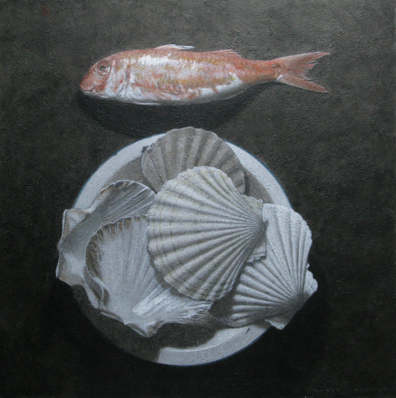 Rob works in a classical technique using the translucency of acrylic paint, over a pencil drawing and monochrome underpainting on gessoed board, to build up tonal depth through multiple glazes of colour.