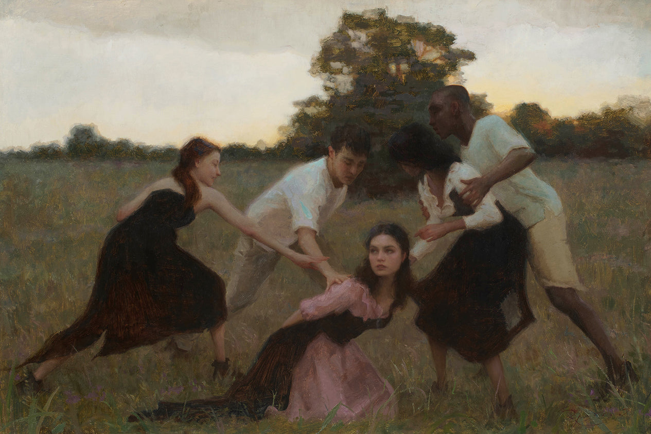 Sympathy, fear, ridicule and fascination are all expressed by this group of individuals, as they stumble unexpectedly across a stranger. But why? Is the stranger so very different from the figures surrounding her? And in which of the five characters do we find ourselves reflected?