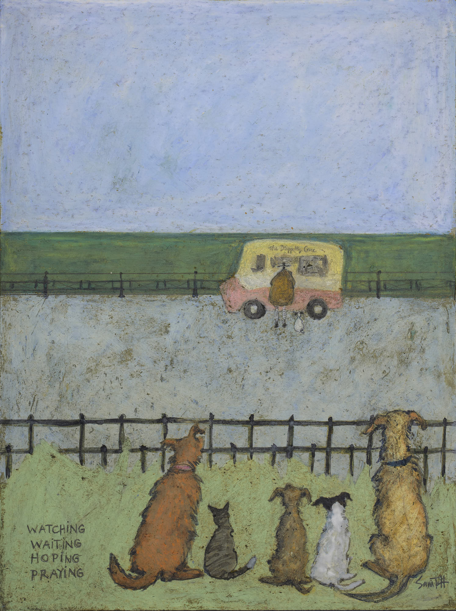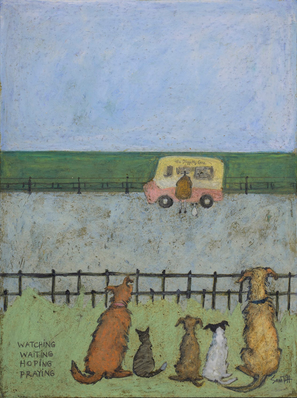 Previously a Catering Manager, Death Grants Advisor, Cinema Usherette and Fire Extinguisher Sales Person, Sam was determined to carve out a niche as an artist. Fifteen years and a whole lot of hard work later, Sam's work is published internationally as posters, greetings cards, calendars and Limited Edition prints and has been sold through outlets such as John Lewis, Paperchase, Next and IKEA. She has had a number of successful solo shows and continues to sell original work through a small number of selected venues. Perhaps Sam's appeal as an artist has something to do with her ability to capture a sense of hope, optimism and good old fashioned British eccentricity. Her characters inhabit a world which is both otherworldly and instantly recognisable. The faded ice cream colours of the British seaside give a feeling of pathos and nostalgia: the wind is often blowing, the weather is often wet, love is often unrequited and there is always sand in the sandwiches.