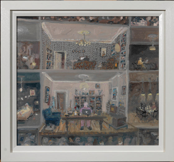 Bushe’s practice centres on the depiction of detailed, suggestive narratives, frequently set within expansive architectonic constructions. His work has won several national awards including the inaugural W. Gordon Smith Painting Prize in 2017 a prize-winner at John Moores Painting Prize 2020 in Liverpool, and the Highly Commended prize at Contemporary British Painting in Huddersfield 2023.